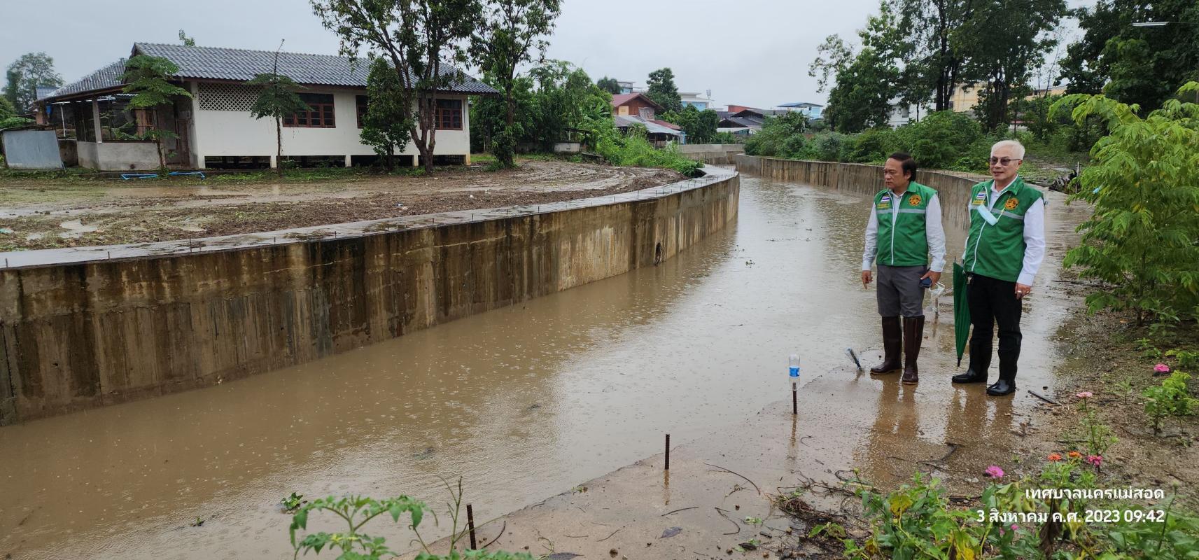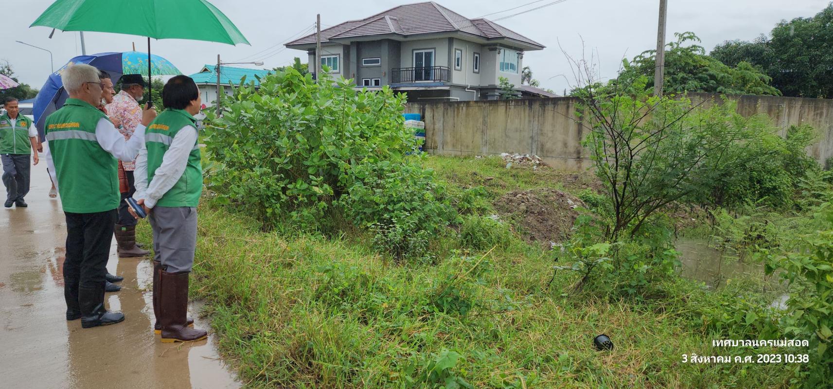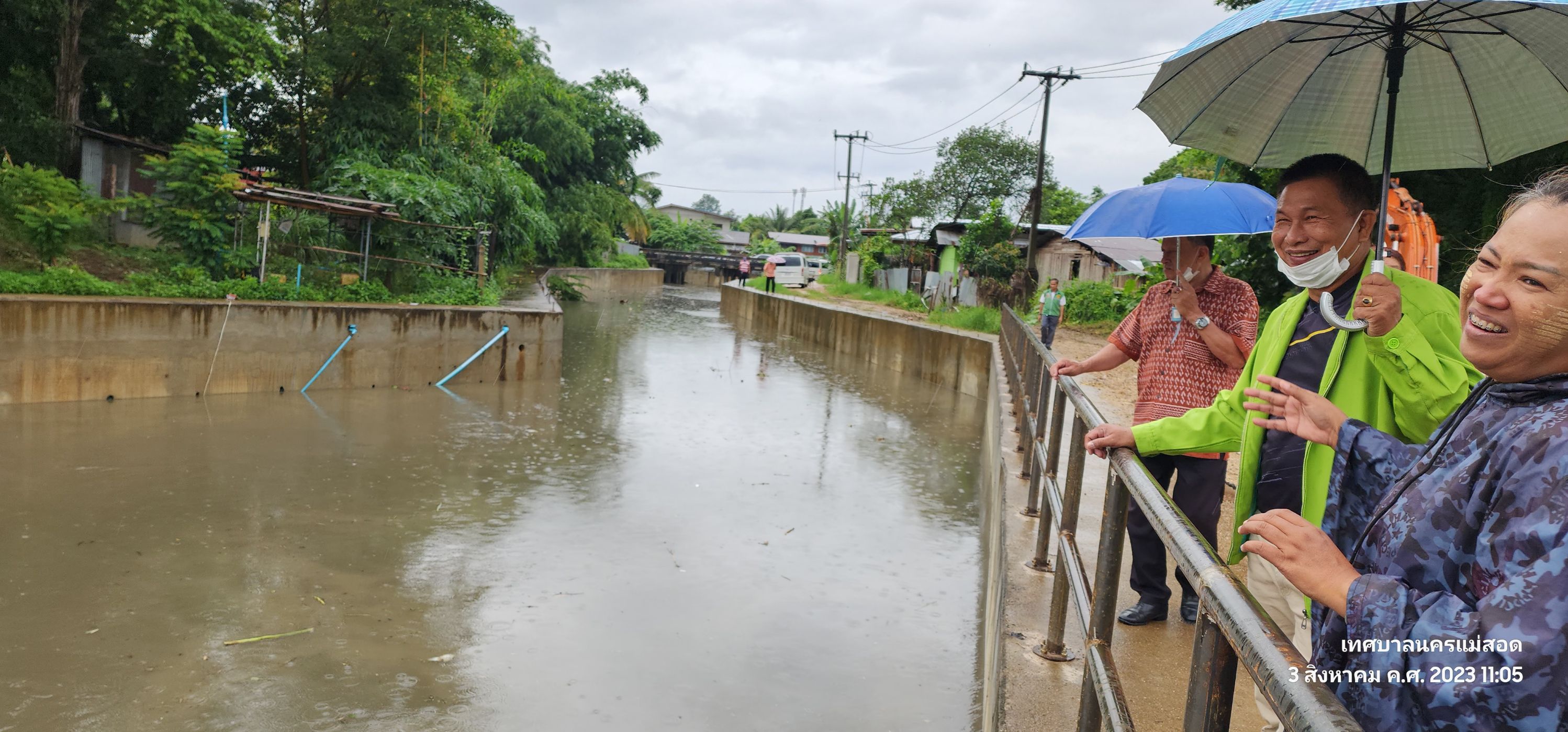 ว่าที่ร้อยตรี ประเสริฐ ปวงละคร นายกเทศมนตรีนครแม่สอด พร้อมด้วยคณะผู้บริหารและสมาชิกสภาเทศบาลนครแม่สอด ลงพื้นที่เพื่อสำรวจปริมาณน้ำในลำห้วย และติดตามสถานการณ์ในพื้นที่เสี่ยงเกิดน้ำท่วม เนื่องจากมีฝนตกหนักในพื้นที่ติดต่อกันหลายวัน