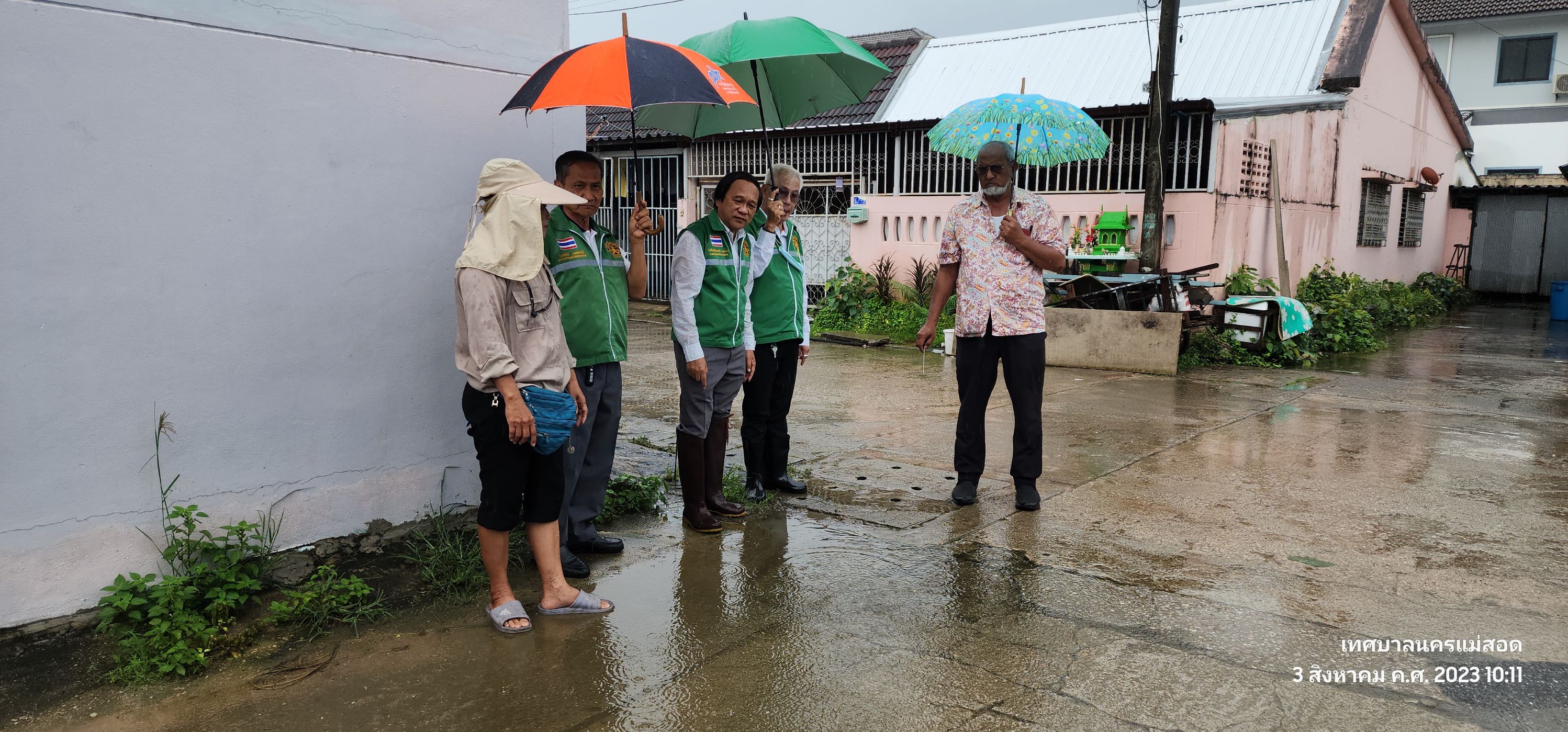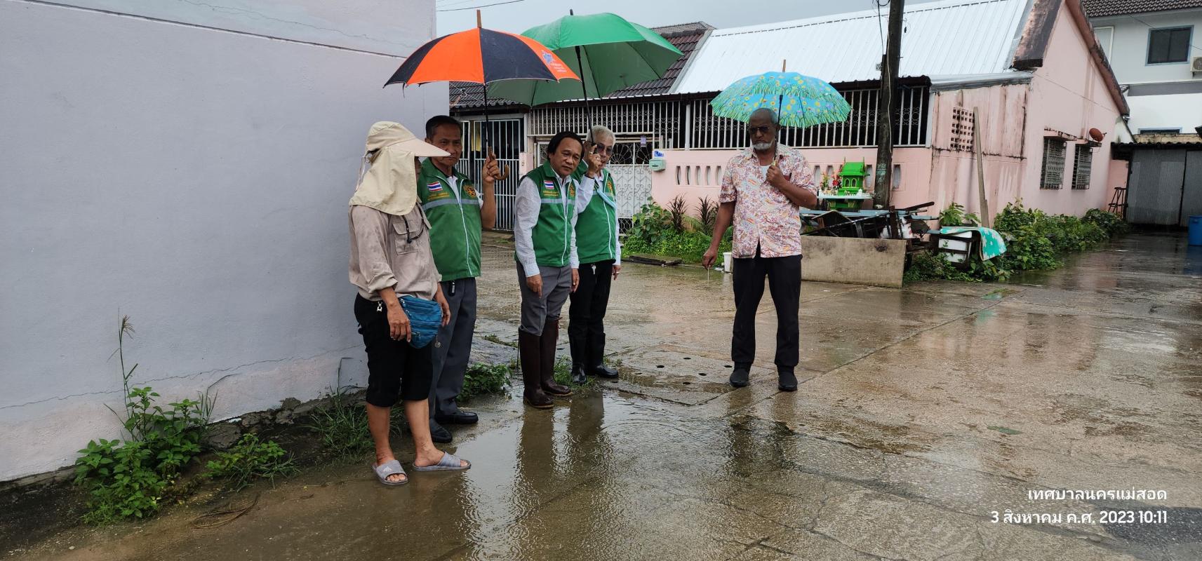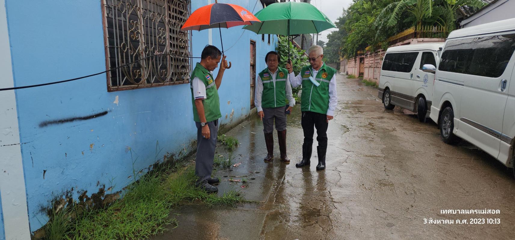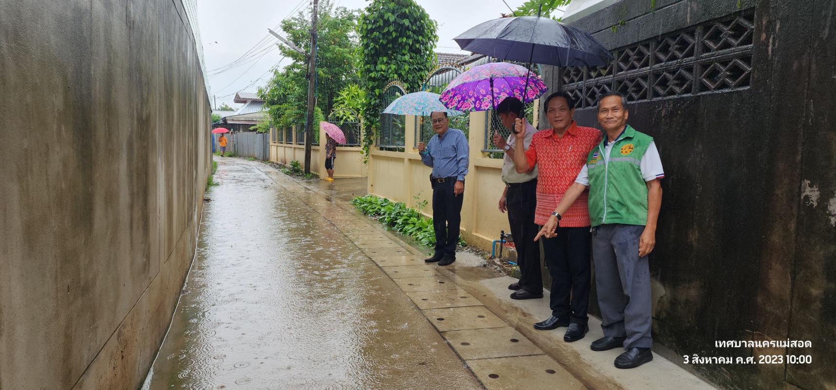 ว่าที่ร้อยตรี ประเสริฐ ปวงละคร นายกเทศมนตรีนครแม่สอด พร้อมด้วยคณะผู้บริหารและสมาชิกสภาเทศบาลนครแม่สอด ลงพื้นที่เพื่อสำรวจปริมาณน้ำในลำห้วย และติดตามสถานการณ์ในพื้นที่เสี่ยงเกิดน้ำท่วม เนื่องจากมีฝนตกหนักในพื้นที่ติดต่อกันหลายวัน