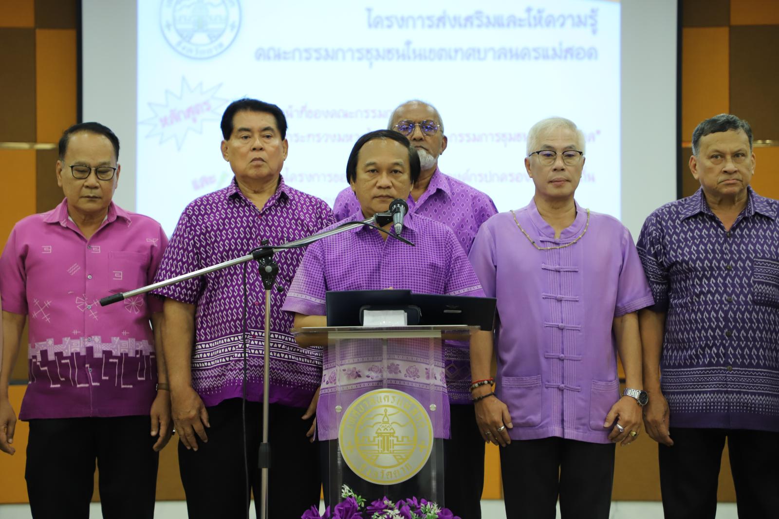 โดยมีนางกิตติวรา วิริยา รองปลัดเทศบาลนครแม่สอด ปฏิบัติรักษาราชการแทนปลัดเทศบาลนครแม่สอด กล่าวถึงวัตถุประสงค์การจัดโครงการส่งเสริมและให้ความรู้คณะกรรมการชุมชนในเขตเทศบาลนครแม่สอด มีวัตถุประสงค์เพื่อให้การปฏิบัติหน้าที่ของคณะกรรมการชุมชนในเขตเทศบาลนครแม่สอด เป็นไปตามระเบียบกระทรวงมหาดไทยว่าด้วยคณะกรรมการชุมชนของเทศบาล และให้การปฏิบัติงานของคณะกรรมการชุมชนเป็นไปในทิศทางเดียวกัน อย่างมีประสิทธิภาพบรรลุเป้าหมายในการพัฒนา/แก้ไขปัญหาชุมชนสามารถสร้างชุมชนให้เข้มแข็งและยั่งยืนได้ ซึ่งในวันนี้ มีผู้เข้าร่วมโครงการประกอบด้วย คณะกรรมการชุมชนในเขตเทศบาลนครแม่สอด ทั้ง 20 ชุมชน
