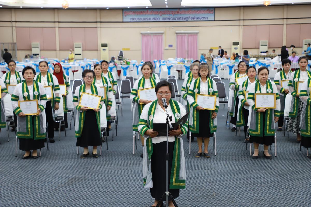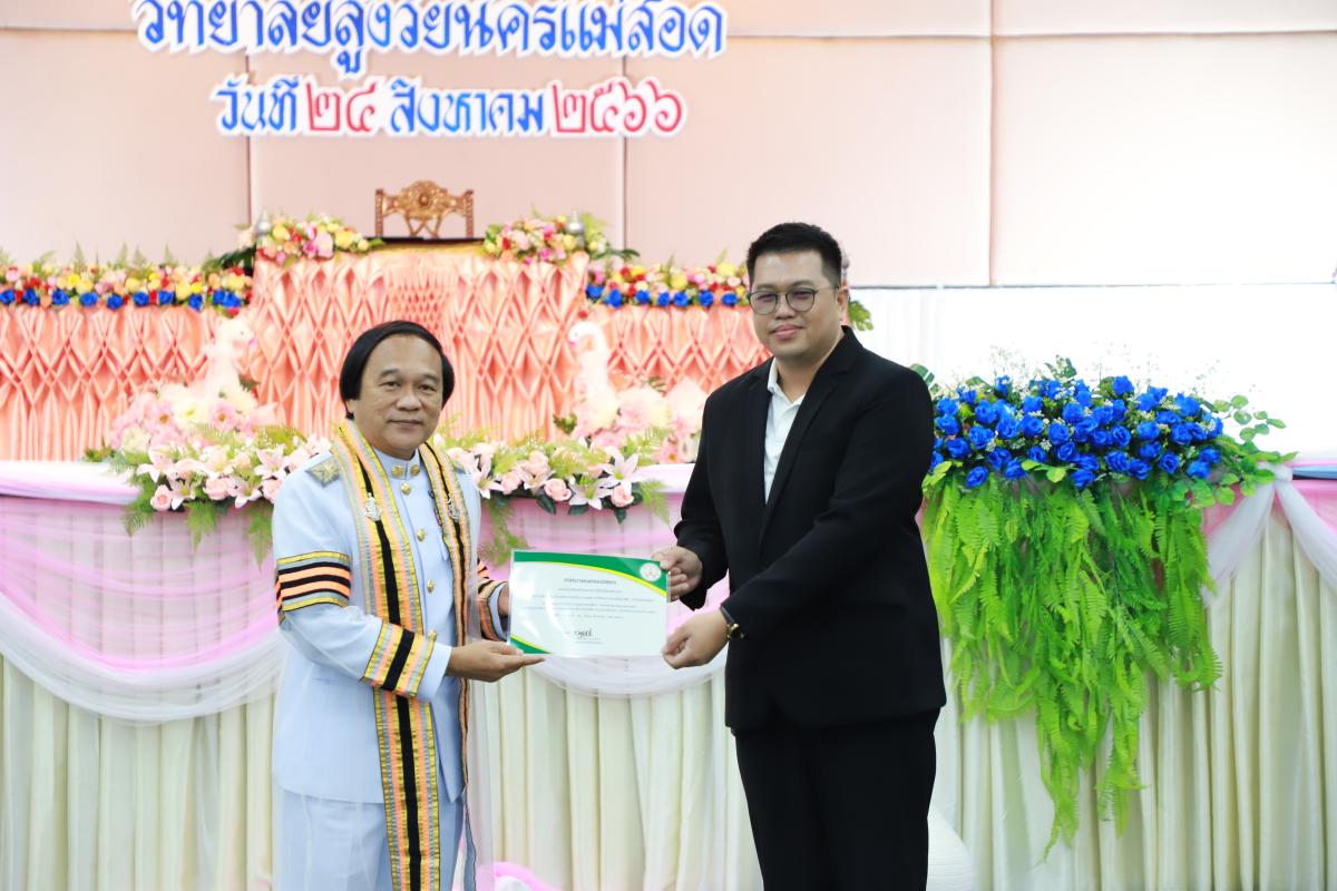 ว่าที่ร้อยตรี ประเสริฐ ปวงละคร นายกเทศมนตรีนครแม่สอด เป็นประธานในพิธีมอบวุฒิบัตรฯพร้อมด้วยคณะผู้บริหาร สมาชิกสภาเทศบาล รองปลัดเทศบาล ผู้อำนวยการกองและเจ้าหน้าที่ที่เกี่ยวข้องเทศบาลนครแม่สอด เข้าร่วมโครงการฯ