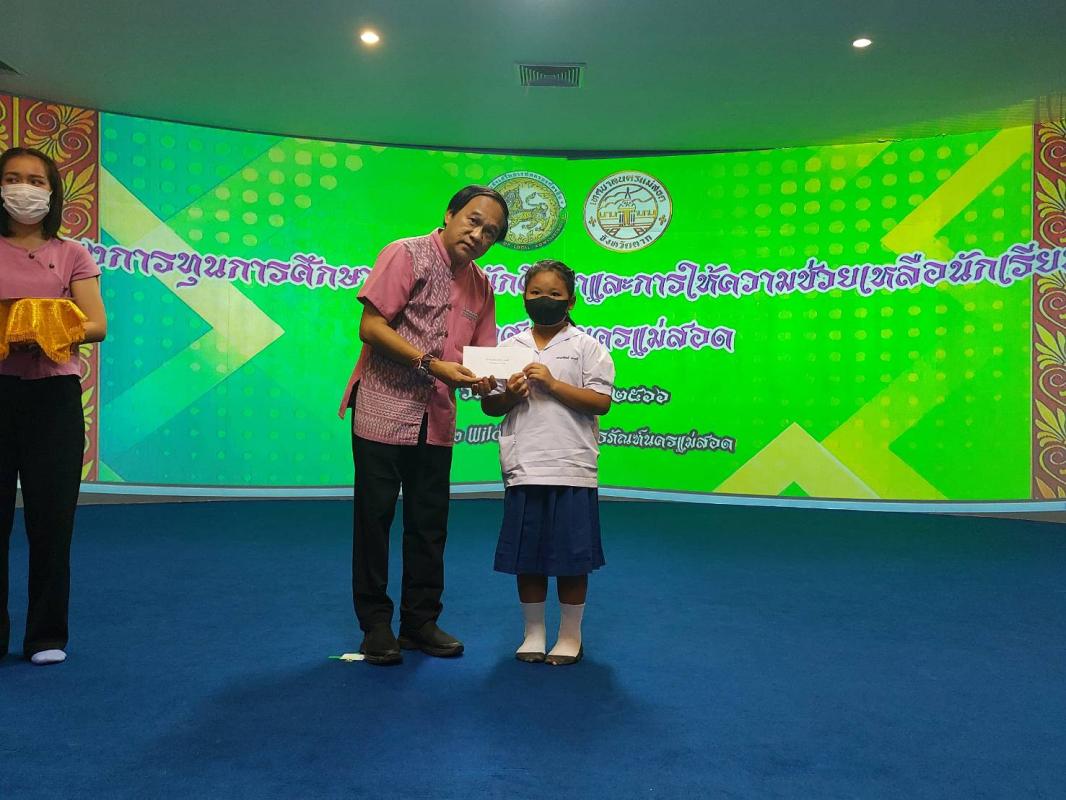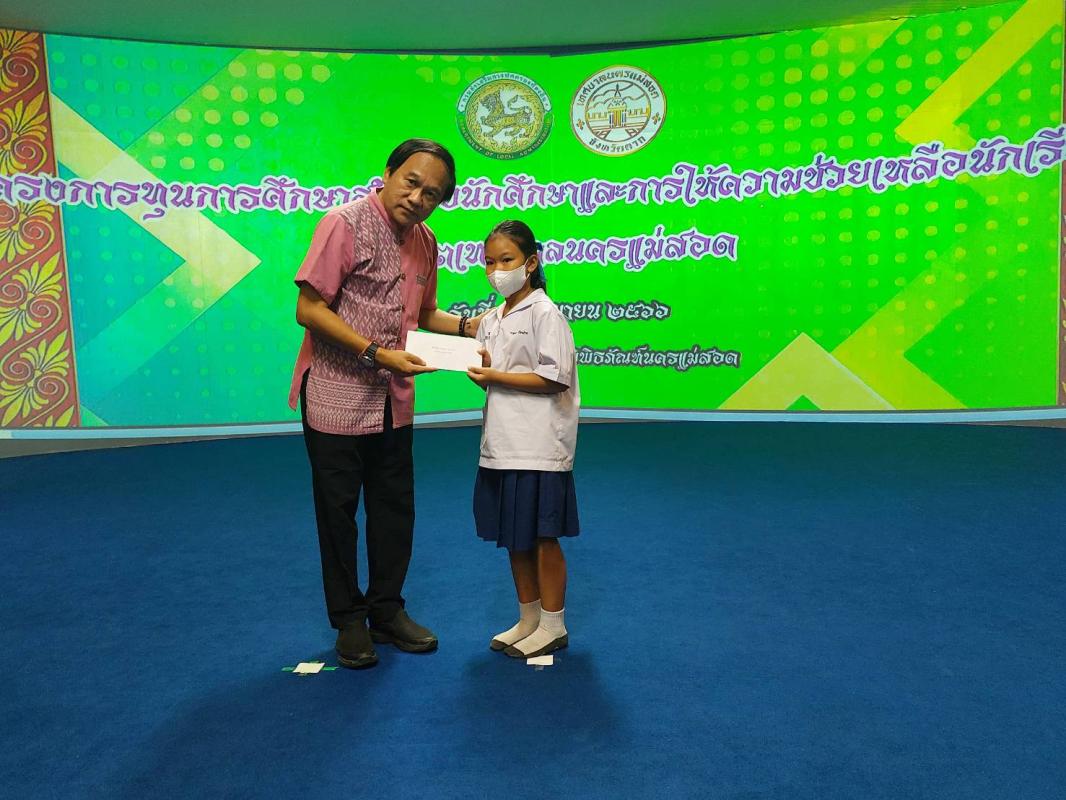 1. มหาวิทยาลัยราชภัฏกำแพงเพชร แม่สอด จำนวน 2 ราย2. วิทยาลัยเทคนิคแม่สอด จำนวน 2 ราย3. โรงเรียนสรรพวิทยาคม จำนวน 2 ราย4. โรงเรียนแม่สอด จำนวน 3 ราย5. ศูนย์การศึกษาพิเศษแม่สอด จำนวน 1 ราย6. โรงเรียนเทศบาลวัดชุมพลคีรี จำนวน 5 ราย7. โรงเรียนเทศบาลวัดมณีไพรสณฑ์ จำนวน 2 ราย8. โรงเรียนเทศบาลวัดบุญญาวาส จำนวน 4 ราย9. โรงเรียนเทศบาลวัดดอนแก้ว จำนวน 3 ราย10.โรงเรียนเทศบาลเฉลิมพระเกียรติสมเด็จพระเทพรัตนราชสุดา ฯสยามบรมราชกุมารี จำนวน 2 ราย11.โรงเรียนกีฬาเทศบาลนครแม่สอด จำนวน 1 รายเป็นจำนวนเงินทั้งสิ้น 94,400 บาท