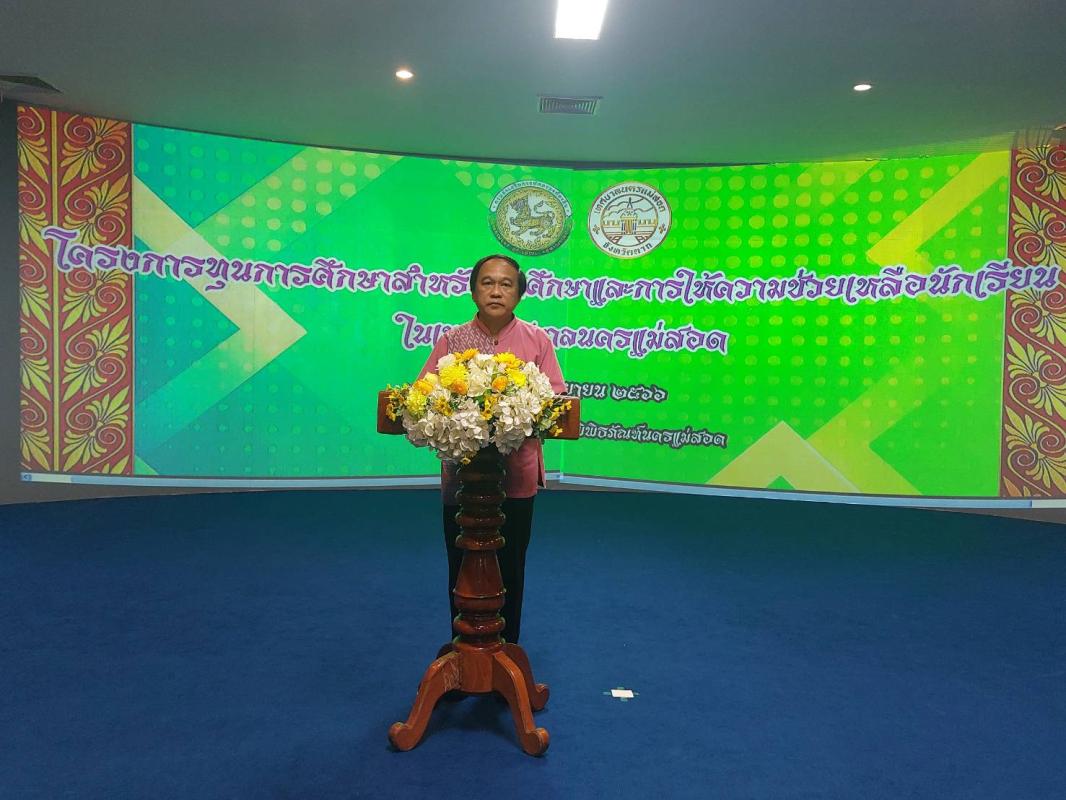 โดยมี นางกิตติวรา วิริยา รองปลัดเทศบาลรักษาการปลัดเทศบาลนครแม่สอด เป็นผู้กล่าวรายงาน ตามที่กระทรวงมหาดไทยได้มีระเบียบว่าด้วยรายจ่ายเกี่ยวกับทุนการศึกษา สำหรับนักศึกษา และการให้ความช่วยเหลือนักเรียนขององค์กรปกครองส่วนท้องถิ่น พ.ศ. 2561 เพื่อเป็นการแบ่งเบาภาระค่าใช้จ่ายของผู้ปกครอง รวมทั้งเป็นการส่งเสริมสนับสนุนการศึกษาแก่นักศึกษาที่มีภูมิลำเนาอยู่ในเขตเทศบาลนครแม่สอด ซึ่งเป็น ผู้ที่มีความขยันหมั่นเพียรมีความประพฤติดี สอดคล้องกับยุทธศาสตร์การพัฒนายุทธศาสตร์ที่ 3 การยกระดับคุณภาพชีวิตเพื่อสร้างความเข้มแข็งให้สังคม มีความพร้อมกับการเปลี่ยนแปลงทางเศรษฐกิจ สังคม วัฒนธรรม และเทคโนโลยี ทางเทศบาลนครแม่สอดได้เห็นความสำคัญในเรื่องดังกล่าวจึงจัดสรรงบประมาณ สำหรับโครงการทุนการศึกษา สำหรับนักศึกษาและการช่วยเหลือนักเรียนในเขตเทศบาลนครแม่สอด จำนวน 100,000 บาท นั้น กองการศึกษาร่วมกับสำนักปลัดเทศบาล ได้ดำเนินการประสานคณะกรรมการช่วยเหลือประชาชนขององค์กรปกครองส่วนท้องถิ่นพิจารณาแบบคำร้องที่สถานศึกษา/สถาบันการศึกษาเสนอขึ้นมา เมื่อวันศุกร์ที่ 4 สิงหาคม 2566 ณ ห้องประชุมโกเมน ชั้น 3 เทศบาลนครแม่สอด โดยคณะกรรมการ ฯ ได้พิจารณาคุณสมบัติพร้อมอนุมัติให้ดำเนินการช่วยเหลือฯ ทั้งสิ้นจำนวน 27 ราย จาก 11 สถาบันการศึกษา ในอำเภอ แม่สอด ได้แก่