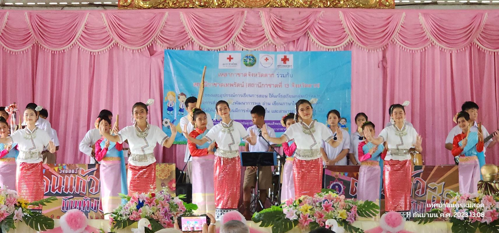 ลงพื้นที่ตรวจเยี่ยมให้กำลังใจคณะครูและนักเรียนกลุ่มเป้าหมายตามโครงการส่งเสริมและพัฒนาการพูด อ่าน เขียนภาษาไทย จังหวัดตาก ประจำปีการศึกษา 2566 พร้อมมอบวัสดุอุปกรณ์สื่อการเรียนการสอน และชุดอุปกรณ์ของใช้สำหรับนักเรียนให้กับผู้แทนโรงเรียนในพื้นที่อำเภอแม่สอด อำเภอพบพระ อำเภอแม่ระมาด อำเภอท่าสองยาง และอำเภออุ้มผาง (5 อำเภอชายแดน) จำนวน 43 แห่ง โดยมีหัวหน้าส่วนราชการและผู้ที่เกี่ยวข้อง เข้าร่วมเป็นเกียรติในพิธีรับมอบดังกล่าว