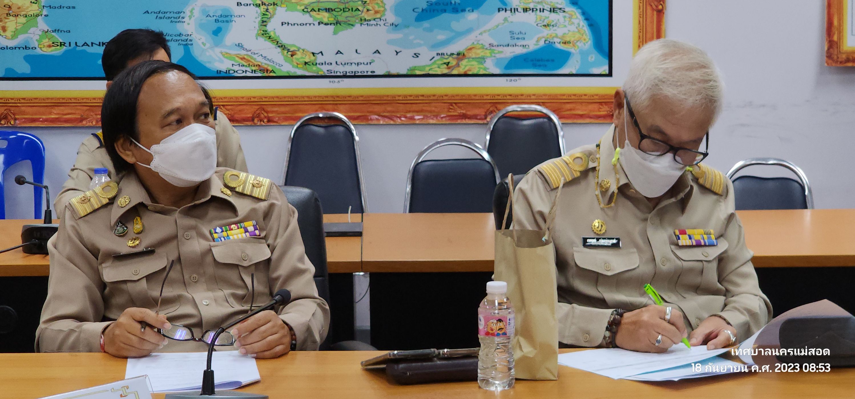 ว่าที่ร้อยตรี ประเสริฐ ปวงละคร นายกเทศมนตรีนครแม่สอด พร้อมด้วย นายกรกฤตย์ กรัณยพัฒนพงศ์ เลขานุการนายกเทศมนตรีนครแม่สอด ร่วมการประชุมขับเคลื่อนนโยบายของรัฐบาลและภารกิจสำคัญของกระทรวงมหาดไทย ผ่านระบบวีดีทัศน์ทางไกล (VCS) เพื่อรับฟังนโยบายจากนายอนุทิน ชาญวีรกูล รองนายกรัฐมนตรี และรัฐมนตรีว่าการกระทรวงมหาดไทย