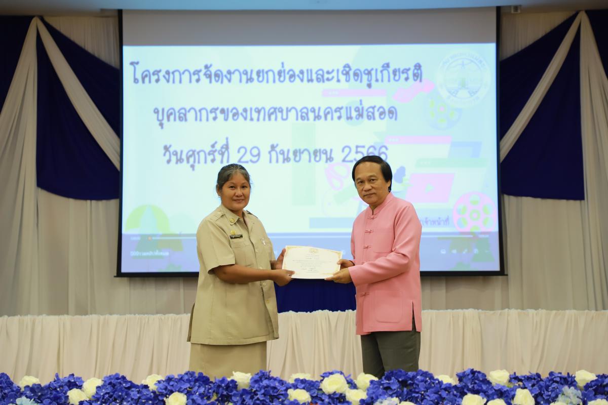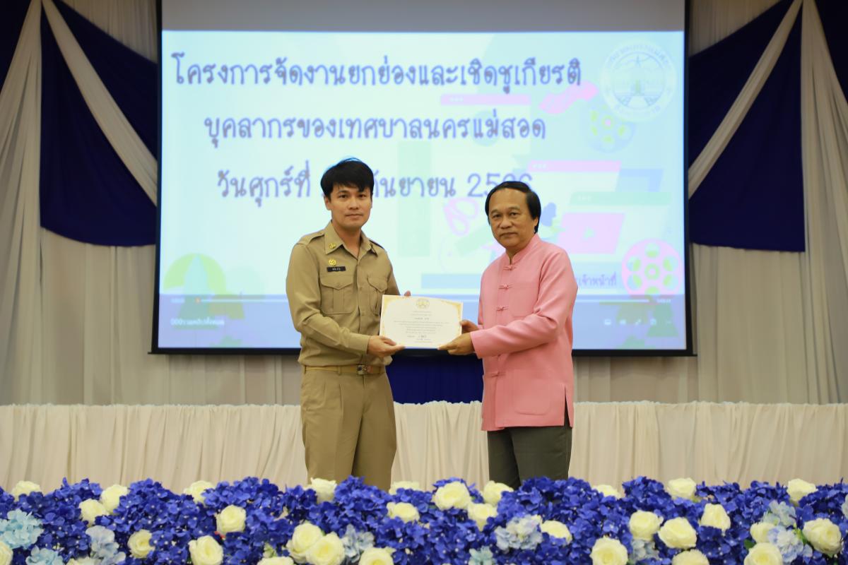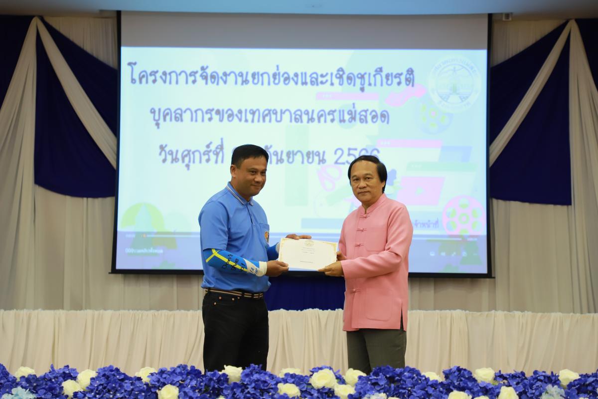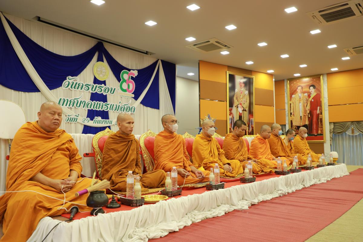 ซึ่งประกอบไปด้วย พิธีสงฆ์สวดเจริญพระพุทธมนต์ เพื่อเป็นศิริมงคลแก่องค์กรและตนเอง พร้อมพิธีแสดงมุธิตาจิตแด่ผู้เกษียณอายุราชการ พิธีมอบโล่รางวัลประกาศเกียรติคุณยกย่องและเชิดชูเกียรติแก่บุคลากรและผู้บำเพ็ญประโยชน์แก่เทศบาลนครแม่สอด