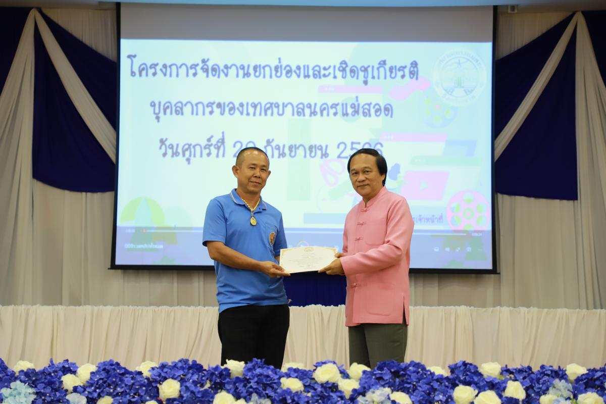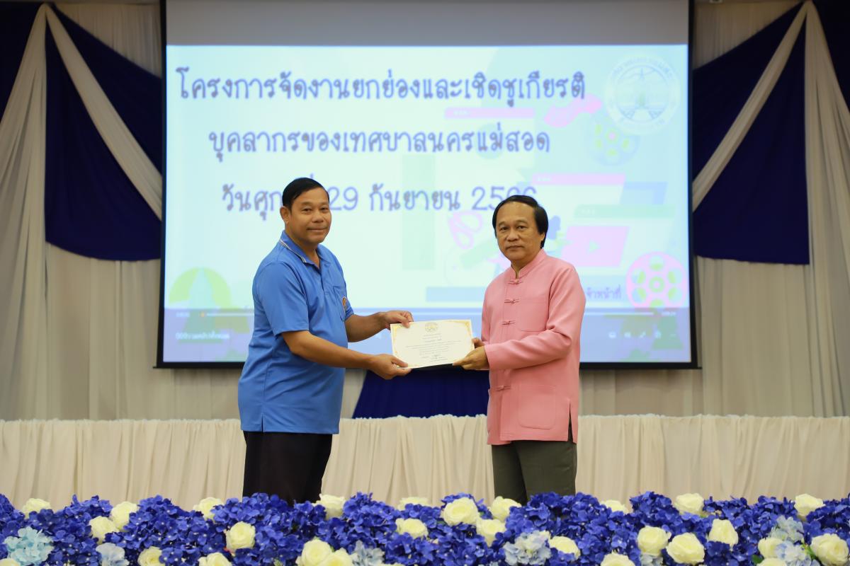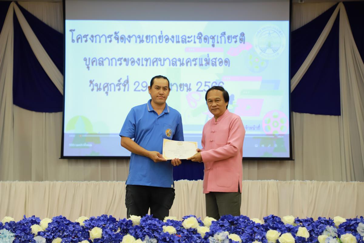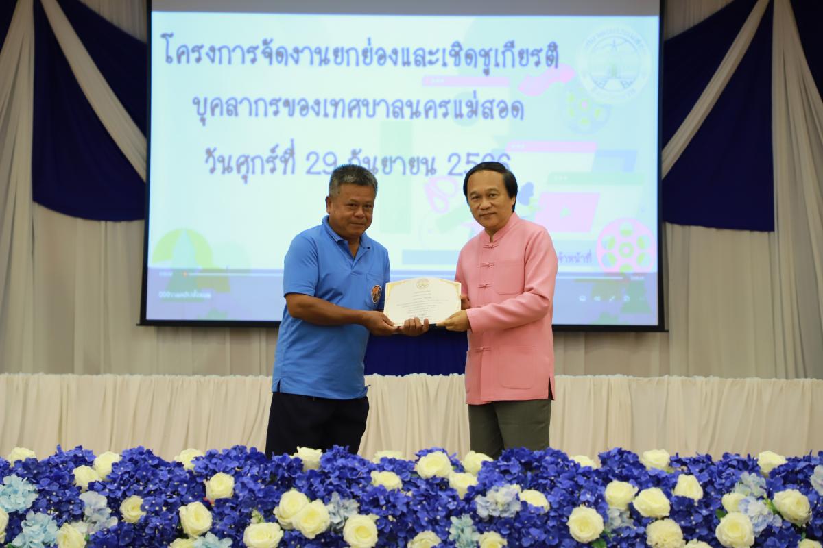 ซึ่งประกอบไปด้วย พิธีสงฆ์สวดเจริญพระพุทธมนต์ เพื่อเป็นศิริมงคลแก่องค์กรและตนเอง พร้อมพิธีแสดงมุธิตาจิตแด่ผู้เกษียณอายุราชการ พิธีมอบโล่รางวัลประกาศเกียรติคุณยกย่องและเชิดชูเกียรติแก่บุคลากรและผู้บำเพ็ญประโยชน์แก่เทศบาลนครแม่สอด