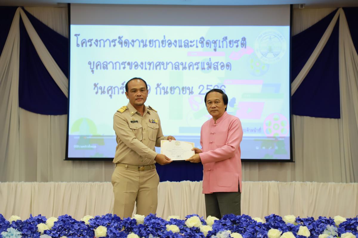 เมื่อวันศุกร์ ที่ 29 กันยายน 2566 เวลา 08.30 น. ณ ห้องประชุมเพชรน้ำหนึ่ง (ชั้น 6) อาคารศูนย์ส่งเสริมอาชีพชุมชนเทศบาลนครแม่สอด อำเภอแม่สอด จังหวัดตาก