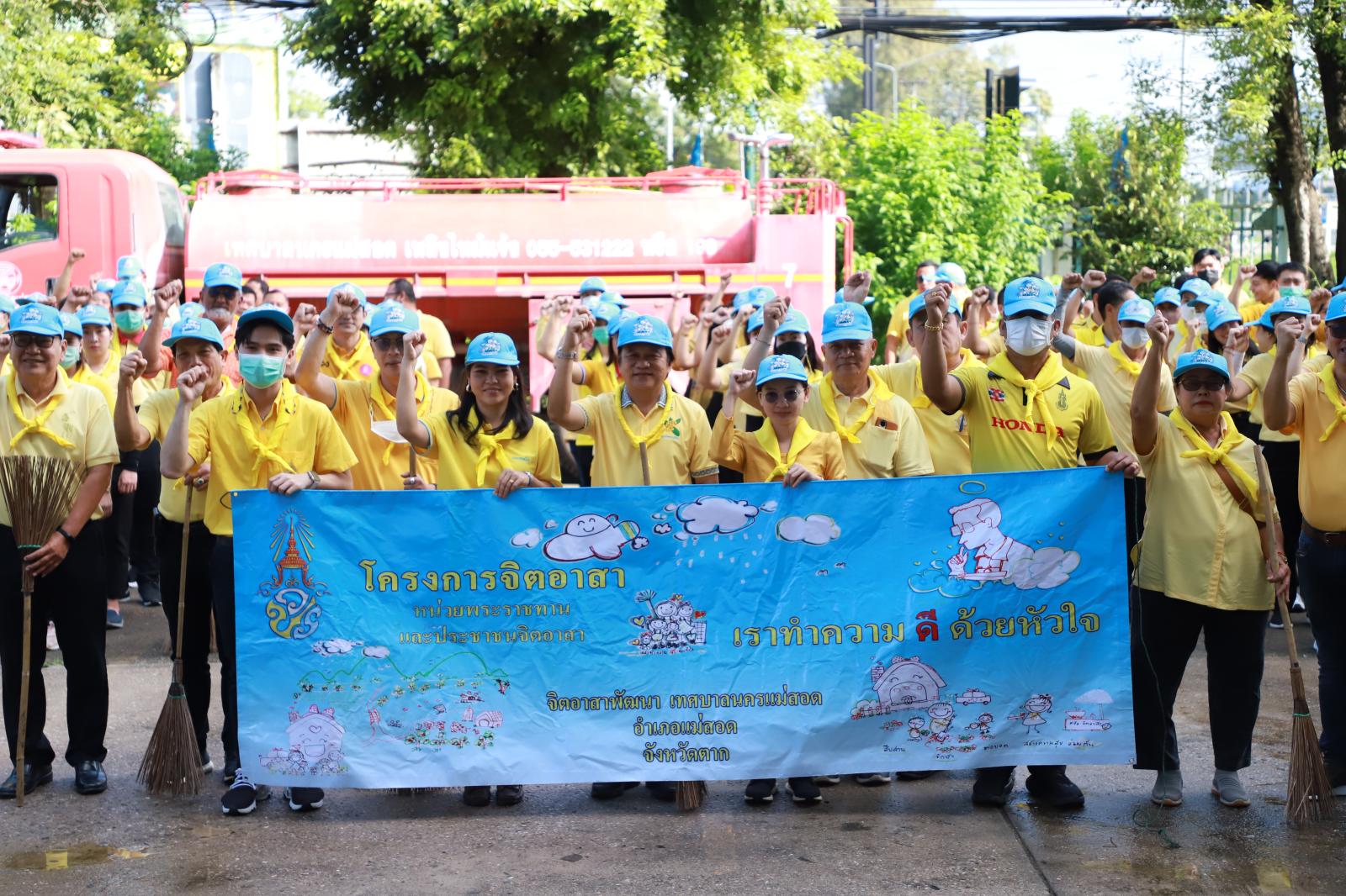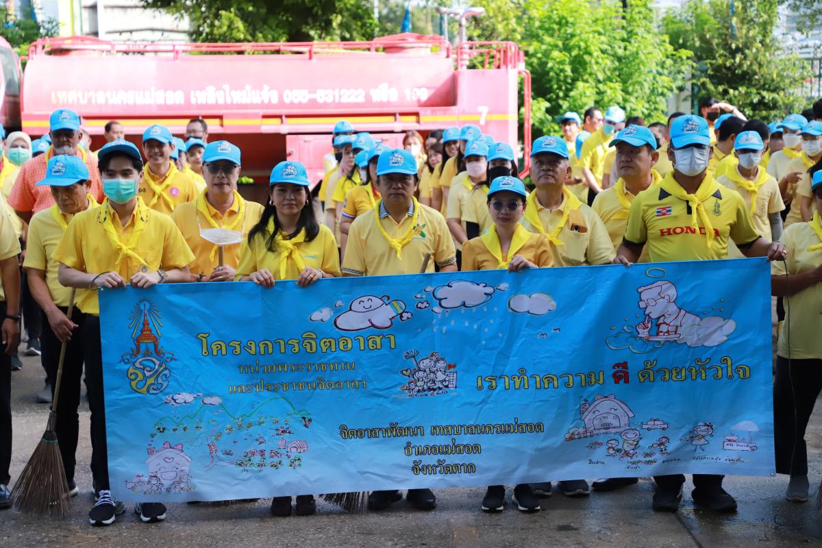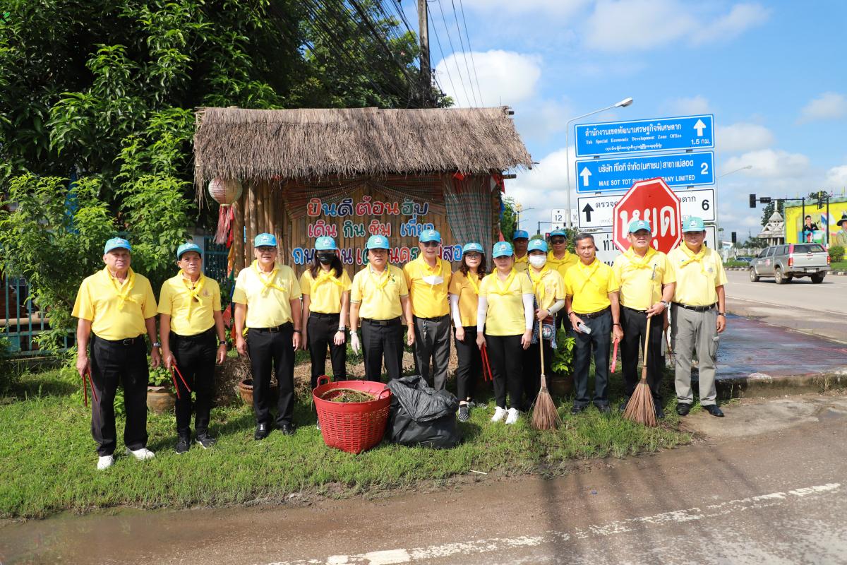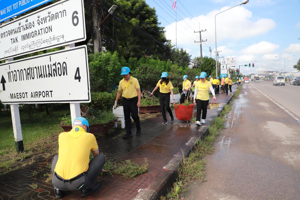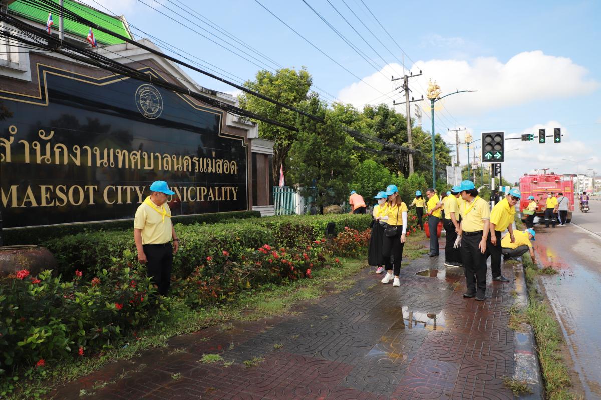 เข้าร่วมกิจกรรมจิตอาสาบำเพ็ญสาธารณประโยชน์ เพื่อบำเพ็ญสาธารณประโยชน์โดยร่วมปรับปรุงภูมิทัศน์ พัฒนาพื้นที่เส้นทางถนนสวรรค์วิถี วงเวียนพระพิฆเนศ ถนนชิดวนา ถนนอะมีนาอุทิศ และรอบเขตสำนักงานเทศบาลนครแม่สอด เนื่องในวันที่ 13 ตุลาคม 2566 และของทุกปี เป็นวันนวมินทรมหาราช เพื่อระลึกถึงพระบาทสมเด็จพระบรมชนกาธิเบศร มหาภูมิพลอดุลยเดชมหาราช บรมนาถบพิตร ด้วยสำนึก ในพระมหากรุณาธิคุณอันหาที่สุดมิได้ที่พระองค์มีต่อพสกนิกรชาวไทยทุกหมู่เหล่า