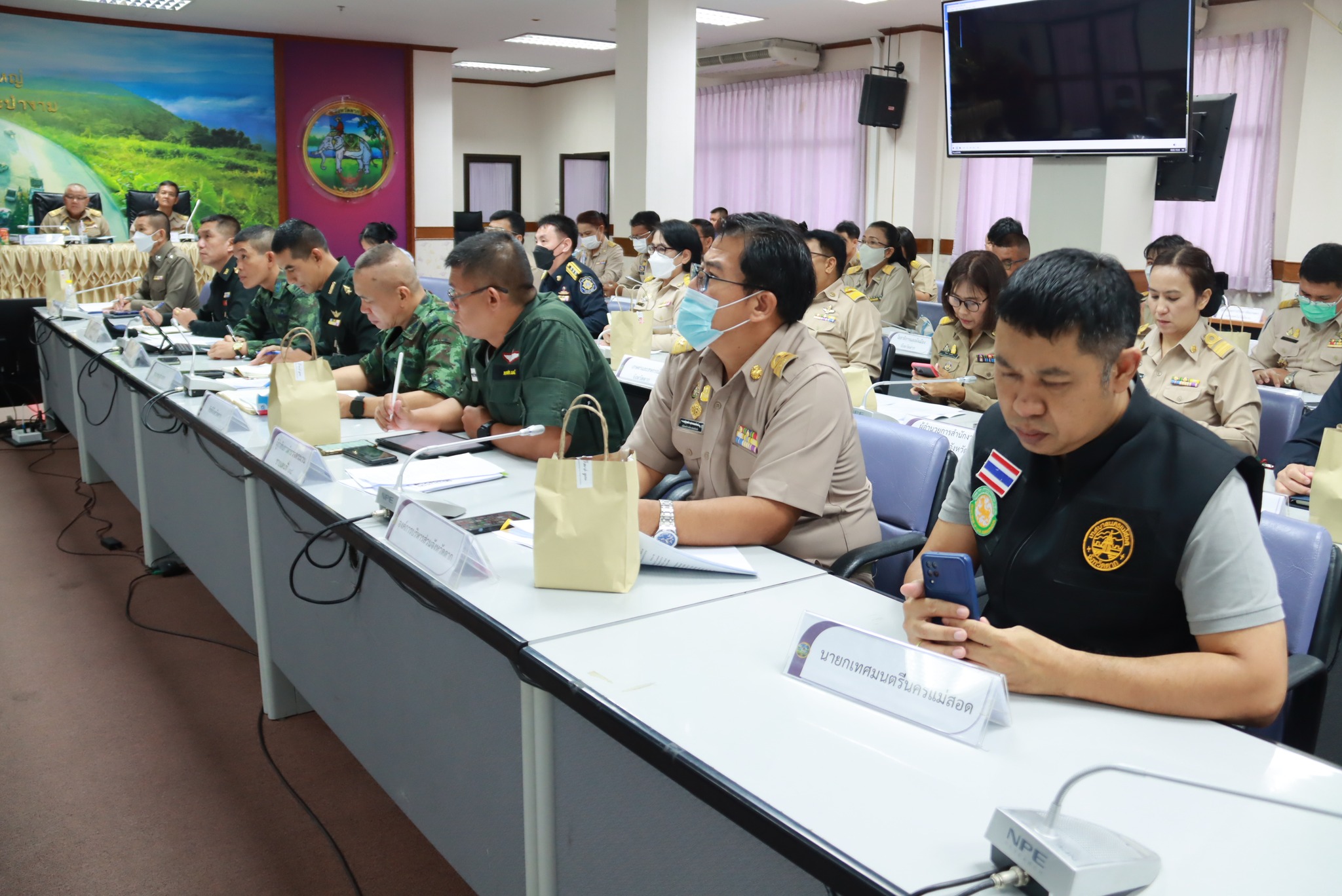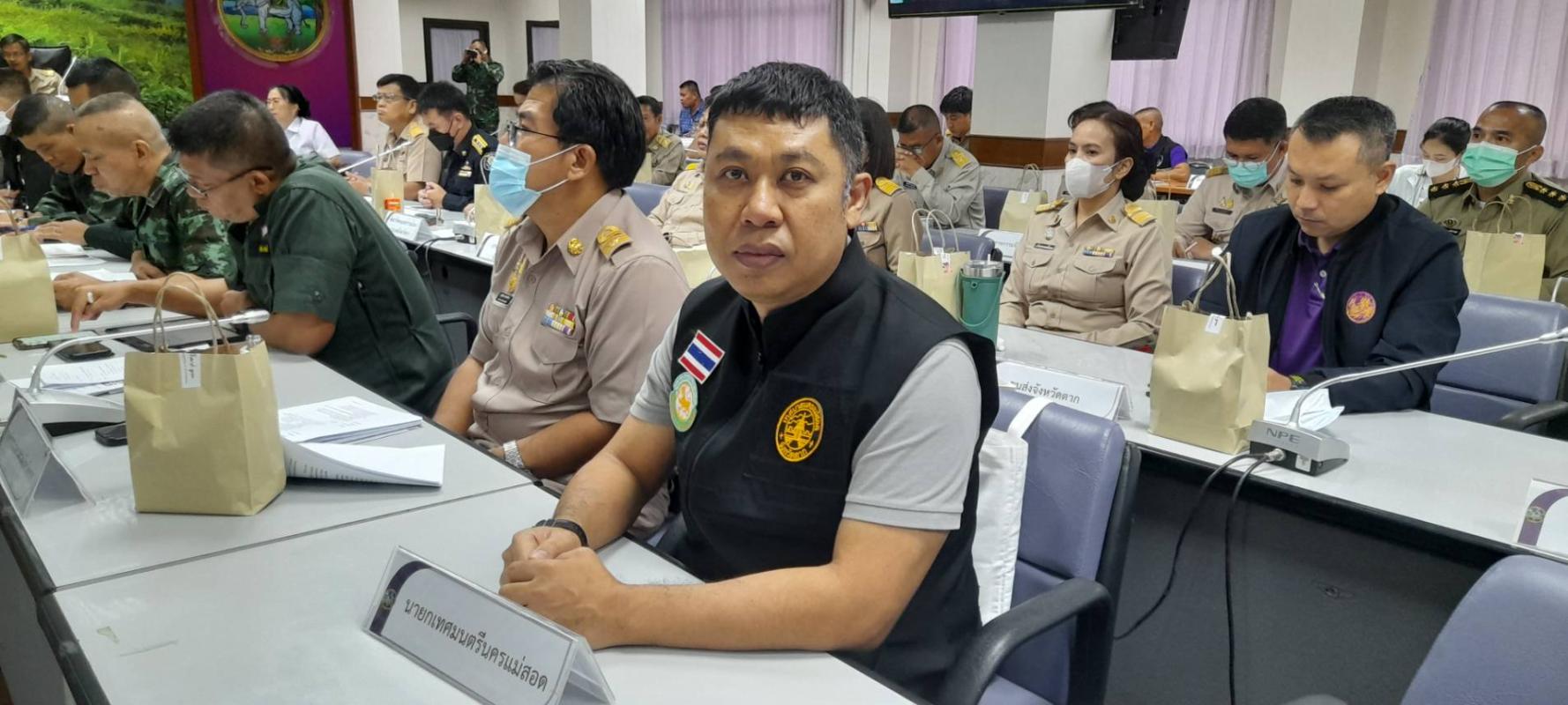 ว่าที่ร้อยตรี ประเสริฐ ปวงละคร นายกเทศมนตรีนครแม่สอด มอบหมายให้นายเสกสรร ศรีรมย์ นักจัดการงานทั่วไปชำนาญการ กองยุทธศาสตร์และงบประมาณ เข้าร่วมการประชุมคณะกรรมการศูนย์อำนวยการป้องกันและปราบปรามยาเสพติด และประชุมคณะกรรมการรักษาความมั่นคงและความสงบเรียบร้อยจังหวัดตาก ครั้งที่ 10/2566 ประจำเดือนตุลาคม 2566 โดยมีนายสมชัย กิจเจริญรุ่งโรจน์ ผู้ว่าราชการจังหวัดตาก เป็นประธานการประชุมฯ