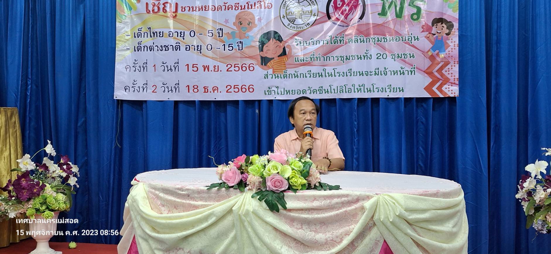 พร้อมด้วยคณะผู้บริหาร สมาชิกสภาเทศบาล ปลัดเทศบาล รองปลัดเทศบาล ผู้อำนวยการกองและเจ้าหน้าที่คลินิกชุมชนอบอุ่น กองสาธารณสุขและสิ่งแวดล้อม กลุ่มอสม. จัดกิจกรรมรณรงค์หยอดวัคซีนโปลิโอ ประจำปี 2566 (ครั้งที่ 1)