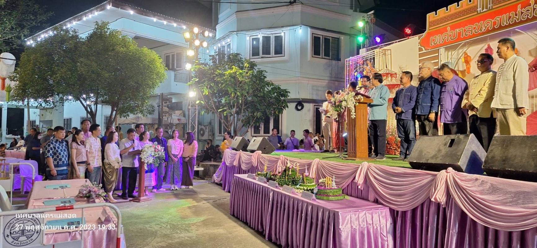 ว่าที่ร้อยตรี ประเสริฐ ปวงละคร นายกเทศมนตรีนครแม่สอด เป็นประธานในพิธีเปิดฯ พร้อมด้วยคณะผู้บริหาร สมาชิกสภาเทศบาล หัวส่วนราชการและพนักงานเทศบาลนครแม่สอดเข้าร่วมกิจกรรมฯ โดยมีนายศุภกร เบญจกัญญา ปลัดเทศบาลนครแม่สอด กล่าวรายงานการจัดโครงการงานประเพณีลอยกระทง ประจำปีงบประมาณ พ.ศ.2567 เพื่อส่งเสริม สืบสาน และอนุรักษ์วัฒนธรรมประเพณีอันดีงามให้คงอยู่ต่อไป เพื่อเด็ก เยาวชน และประชาชนได้ร่วมในกิจกรรม สร้างสัมพันธ์อันดีระหว่างองค์กรและประชาชนในท้องถิ่น
