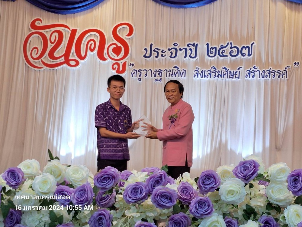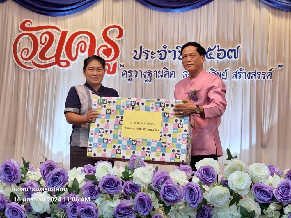 ว่าที่ร้อยตรี ประเสริฐ ปวงละคร นายกเทศมนตรีนครแม่สอด พร้อมด้วยคณะผู้บริหาร สมาชิกสภาเทศบาล ปลัดเทศบาล รองปลัดเทศบาล ผู้อำนวยการกอง ข้าราชการ และพนักงานเทศบาลนคร แม่สอด ผู้อำนวยการสถานศึกษา และคณะครู อาจารย์ เข้าร่วมเป็นเกียรติในกิจกรรมวันครูแห่งชาติ ประจำปี 2567 โดยนายเศรษฐา ทวีสิน นายกรัฐมนตรี มอบคำขวัญวันครู ปีนี้คือ "ครูวางฐานคิด ส่งเสริมศิษย์สร้างสรรค์“ และพิธีทำบุญตักบาตรข้าวสารอาหารแห้ง พระภิกษุ สามเณร จำนวน 9 รูปพิธีบูชาบูรพาจารย์ พิธีมอบโล่ – เกียรติบัตรให้แก่ข้าราชการครูและบุคลากรทางการศึกษาดีเด่น เพื่อระลึกถึงพระคุณครูบูรพาจารย์ เนื่องจากครูเป็นผู้ทรงคุณค่าที่มีบทบาทสำคัญต่อกระบวนการสร้างทรัพยากรบุคคลของชาติ บ่มเพาะเด็กและเยาวชนให้มีความรู้ มีจิตสำนึกที่ดีต่อไป โดยนายสัญญา เพชรเศษ นายอำเภอแม่สอด ให้เกียรติเป็นประธานในพิธีดังกล่าว