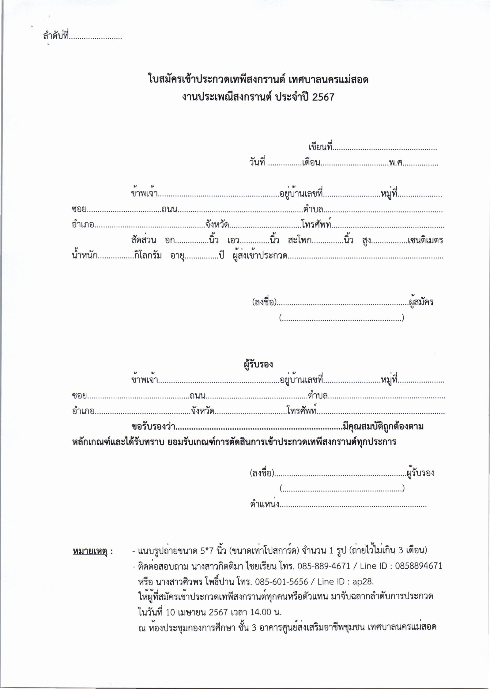 เทศบาลนครแม่สอดขอประชาสัมพันธ์ แจ้งกำหนดการ / ผังการจัดงาน / ผังเส้นทางขบวนแห่สงกรานต์ และ หลักเกณฑ์พร้อมใบสมัครเข้าการประกวดเทพีสงกรานต์เทศบาลนครแม่สอด ประจำปี 2567 ในระหว่างวันที่ 13-16 เมษายน 2567นี้