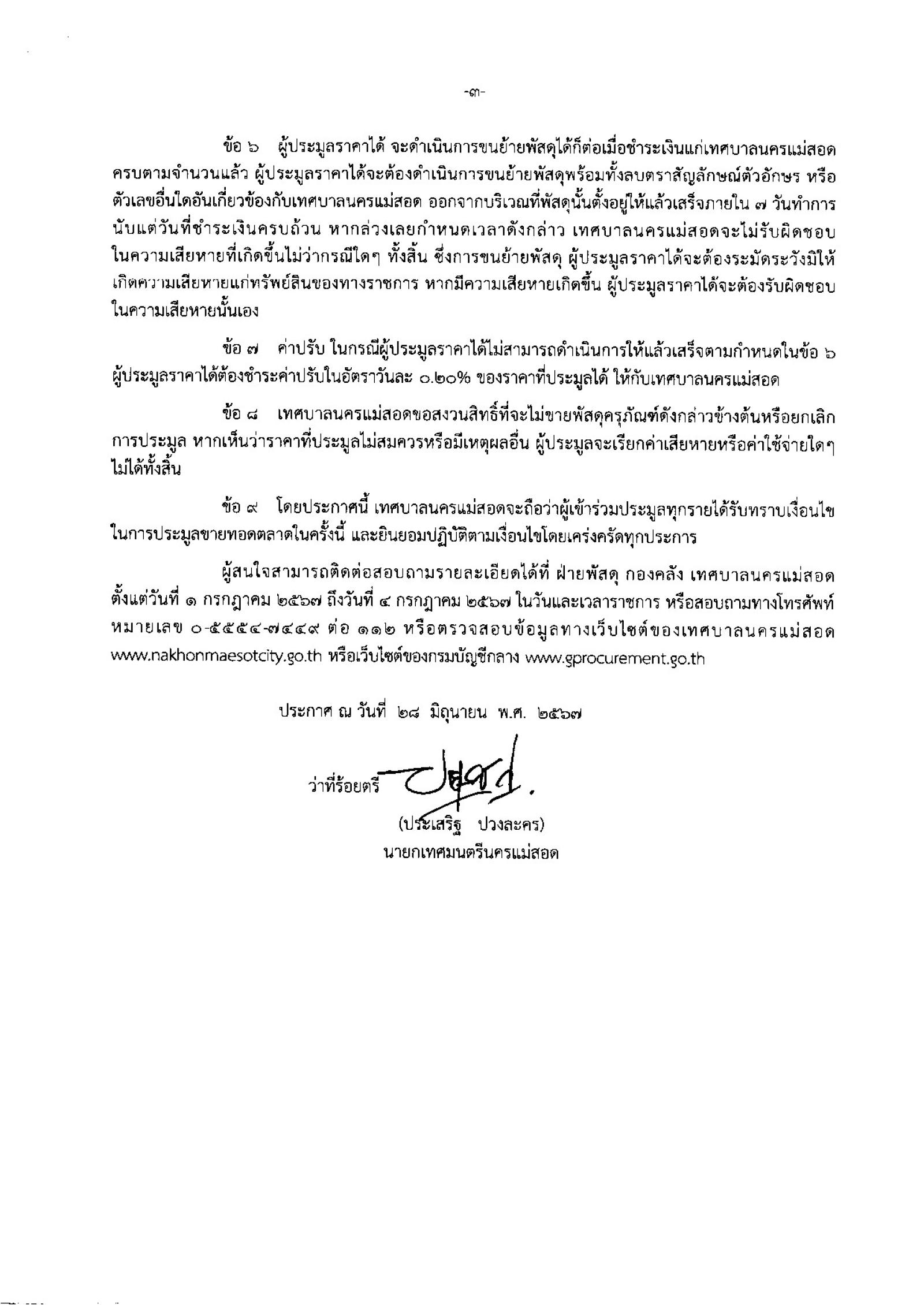 เทศบาลนครแม่สอด ขอประชาสัมพันธ์ การขายทอดตลาดพัสดุที่มีสภาพชำรุด จำนวน 4 รายการ ในวันพฤหัสบดีที่ 18 ธันวาคม 2568 โดยเริ่มประมูลตั้งแต่เวลาตั้งแต่เวลา 09.00 - 10.00 น. ณ ที่ทำการด่านศุลกากรแม่สอด