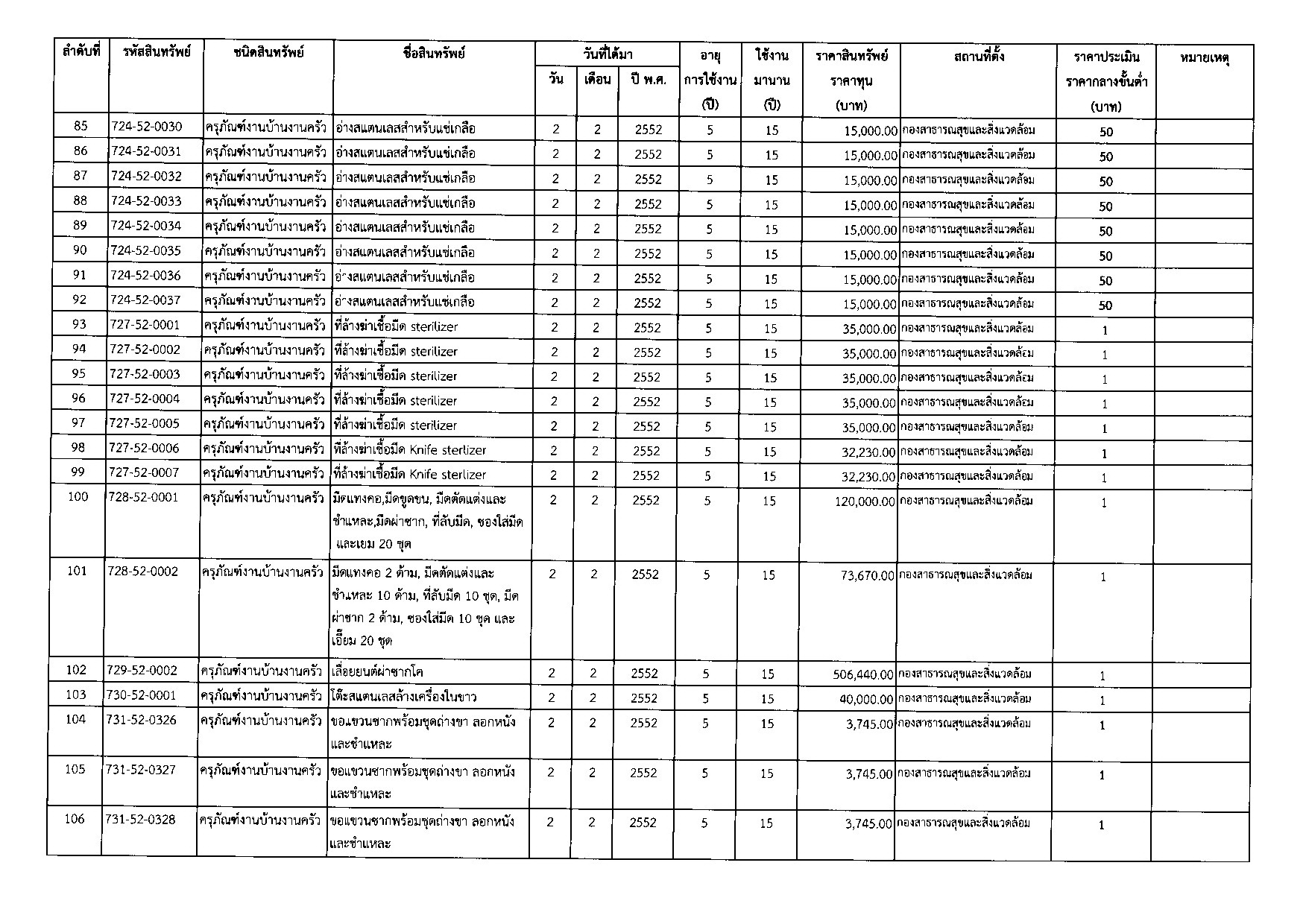 เทศบาลนครแม่สอด ขอประชาสัมพันธ์ ศูนย์พัฒนาเด็กเล็กโรงเรียนเทศบาลวัดมณีไพรสณฑ์ พัสดุขายทอดตลาด ครุภัณฑ์ที่ชำรุด เสื่อมสภาพหรือไม่จำเป็นใช้ในราชการต่อไป จำนวน 92 รายการ