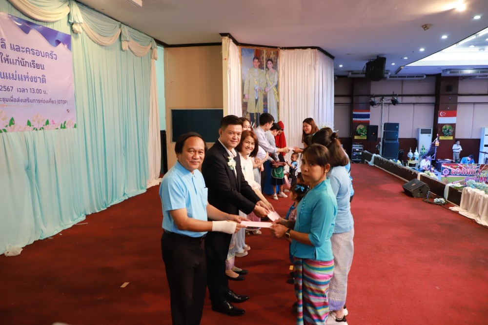 วันจันทร์ ที่ 12 สิงหาคม พ.ศ. 2567 เวลา 13.00 น. ณ ศูนย์กลางแสดงสินค้าและศูนย์ประชุมเพื่อส่งเสริมการท่องเที่ยว (OTOP) เทศบาลนครแม่สอด อำเภอแม่สอด จังหวัดตาก ว่าที่ร้อยตรี ประเสริฐ ปวงละคร นายกเทศมนตรีนครแม่สอด เป็นตัวแทนกล่าวขอบคุณในพิธีมอบทุนการศึกษาให้แก่นักเรียน พร้อมด้วย คณะผู้บริหาร สมาชิกสภาเทศบาล หัวหน้าส่วนราชการ และพนักงานเทศบาลนครแม่สอด ผู้ปกครอง และนักเรียน เข้าร่วมพิธีมอบทุนการศึกษา