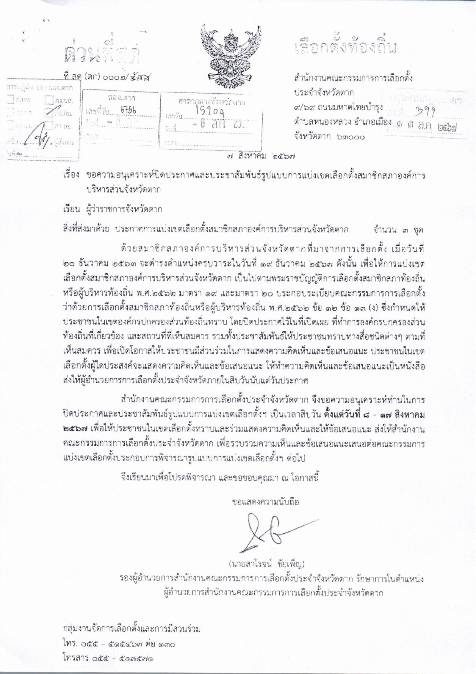 ประชาสัมพันธ์รูปแบบการแบ่งเขตเลือกตั้งสมาชิกองค์การบริหารส่วนจังหวัดตาก