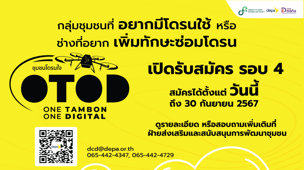 ประกาศสำนักงานส่งเสริมเศรษฐกิจดิจิทัลเรื่อง การรับสมัครกลุ่มชุมชนและช่างชุมชนเข้าร่วมโครงการ 1 ตำบล 1 ดิจิทัล (ชุมชนโดรนใจ) ครั้งที่ 3 ดาวน์โหลด