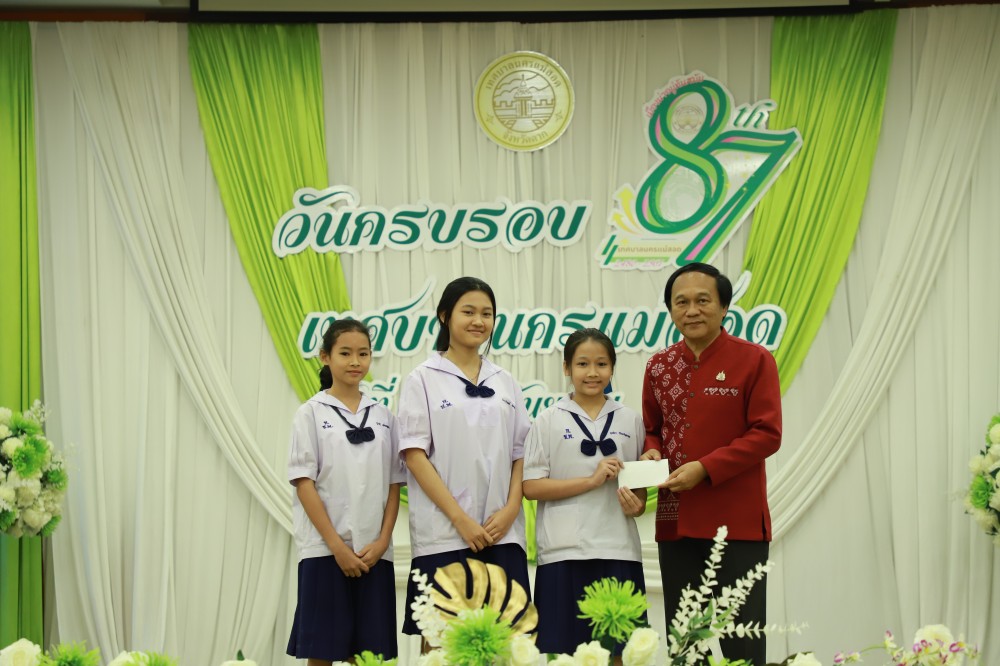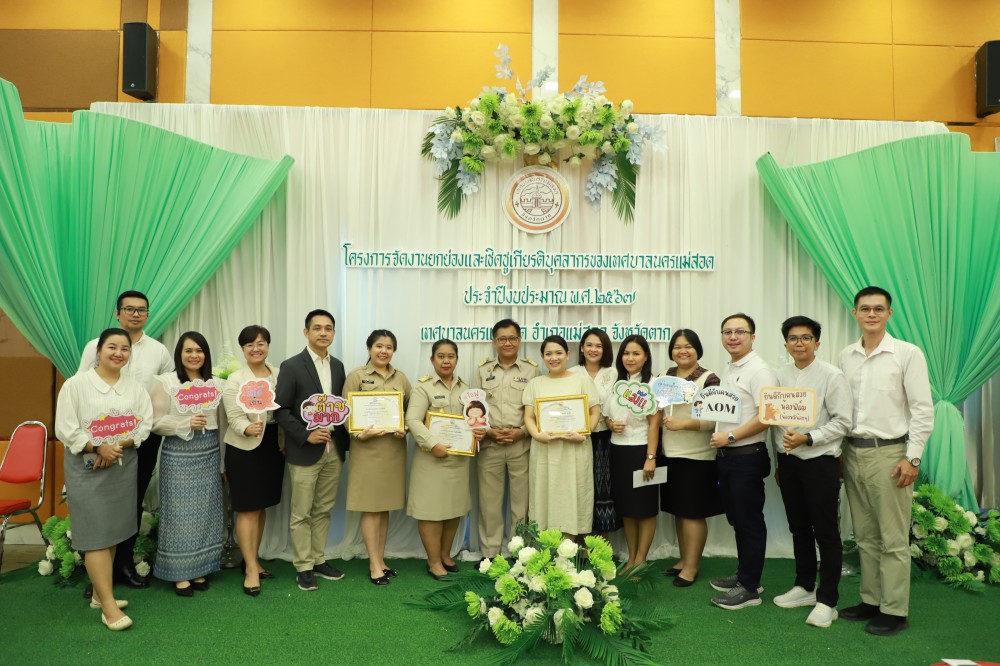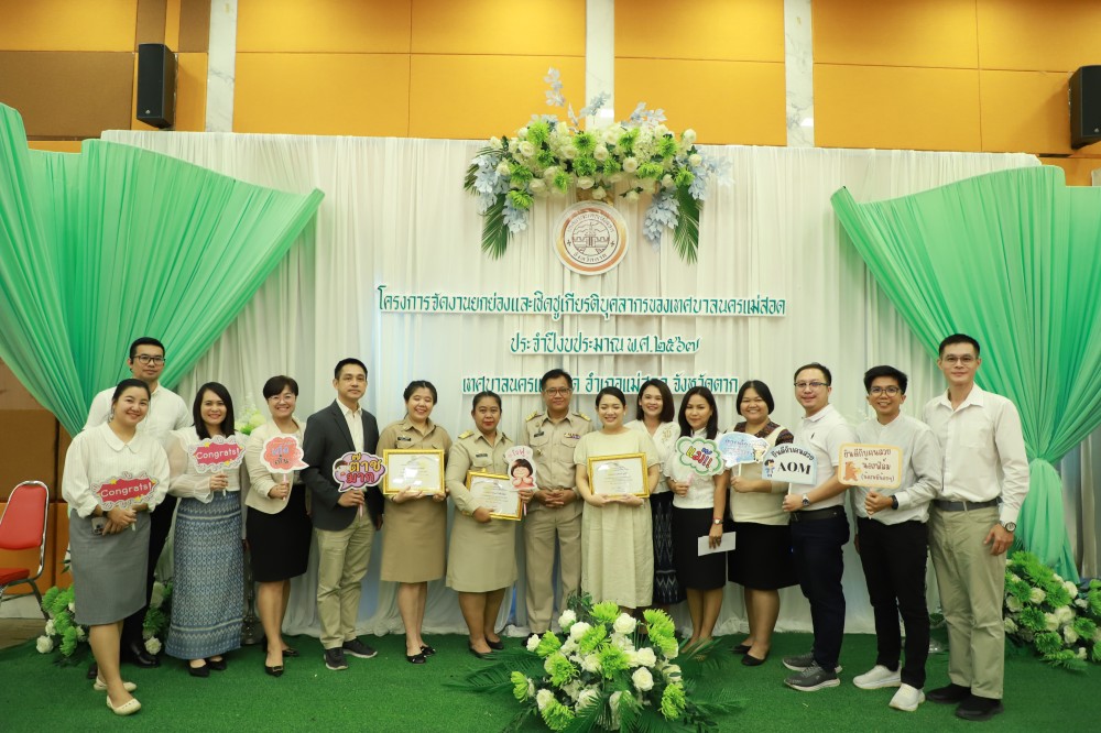 ว่าที่ร้อยตรี ประเสริฐ ปวงละคร นายกเทศมนตรีนครแม่สอด เป็นประธานเปิดฯ พร้อมด้วย คณะผู้บริหาร สมาชิกสภาเทศบาล หัวหน้าส่วนราชการ ข้าราชการ และพนักงานเทศบาลนครแม่สอด เข้าร่วมโครงการจัดงานยกย่องและเชิดชูเกียรติบุคลากรของเทศบาลนครแม่สอด พร้อมพิธีมอบรางวัลให้แก่นักกีฬาที่ได้รับเหรียญรางวัลการแข่งขันกีฬานักเรียนองค์กรปกครองส่วนท้องถิ่น ระดับประเทศ ปีงบประมาณ 2567 ณ จังหวัดร้อยเอ็ด มอบโล่รางวัลประกาศเกียรติคุณยกย่องและเชิดชูเกียรติบุคลากรของเทศบาลนครแม่สอด และโรงเรียนในสังกัดเทศบาลนครแม่สอด พร้อมฉายวิดีทัศน์ผู้ที่ได้รับโล่รางวัล พร้อมพิธีมอบโล่ประกาศเกียรติคุณแก่ผู้เกษียณอายุราชการ