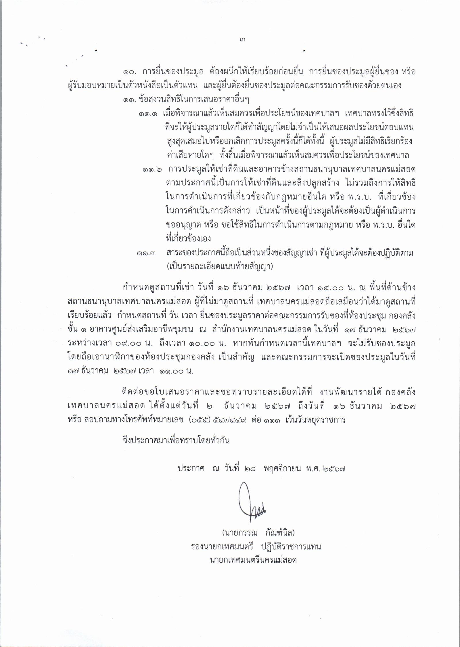 เทศบาลนครแม่สอด เปิดประมูลให้เช่าที่ดินและอาคารด้านข้างสถานธนานุบาลเทศบาลนครแม่สอด ครั้งที่ 2