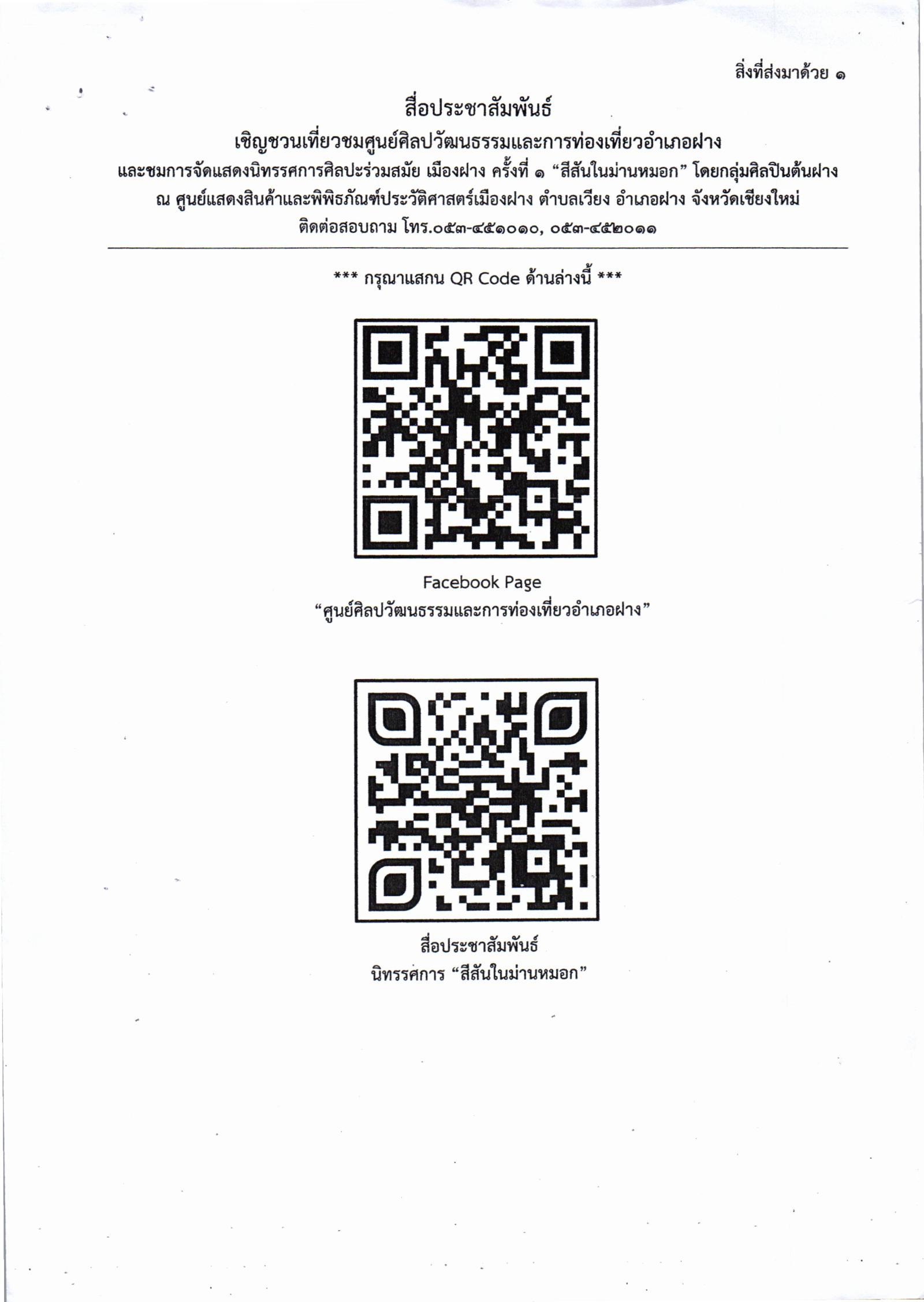 ประชาสัมพันธ์เชิญชวนเที่ยวชมศูนย์ศิลปวัฒนธรรมและการท่องเที่ยวอำเภอฝางชมการจัดแสดงนิทรรศการศิลปะร่วมสมัย เมืองฝาง ครั้งที่ 1 “สีสันในม่านหมอก”