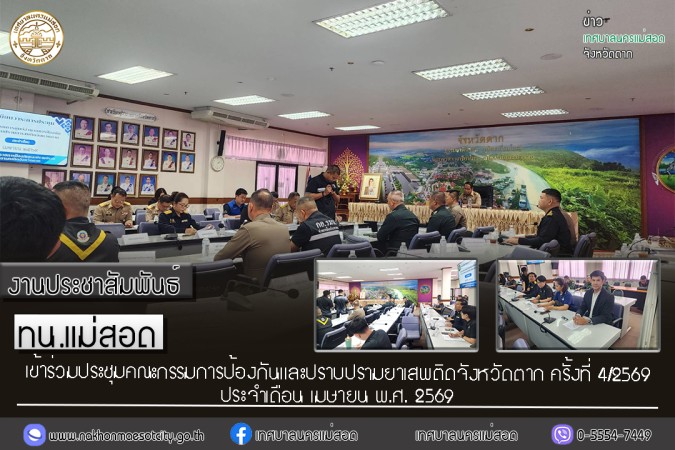 เทศบาลนครแม่สอด เข้าร่วมประชุมคณะกรรมการป้องกันและปราบปรามยาเสพติดจังหวัดตาก ครั้งที่ 4/2569 ประจำเดือน เมษายน พ.ศ. 2569