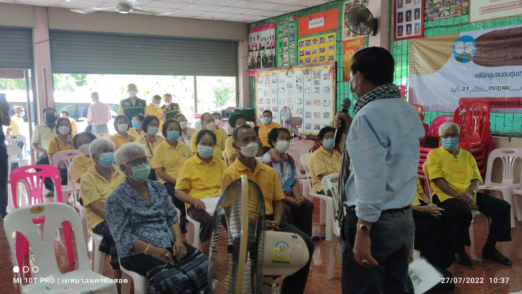 นำผู้สูงอายุเข้าร่วมกิจกรรม โดยกิจกรรมประกอบไปด้วย การตรวจคัดกรองสุขภาพ (ชั่งน้ำหนัก วัดส่วนสูง วัดรอบเอว วัดความดันโลหิต) กิจกรรมไหว้พระสวดมนต์ นั่งสมาธิ การทดสอบความรู้ก่อนการอบรม กิจกรรมให้ความรู้และการฝึกปฏิบัติเรื่อง “การออกกำลังกายสำหรับผู้สูงอายุ” กิจกรรมนันทนาการให้ความรู้เรื่อง “สุขภาพช่องปากสำหรับผู้สูงอายุ” เพื่อให้ผู้สูงอายุสามารถนำความรู้ไปใช้ในการดำเนินชีวิตประจำวันได้