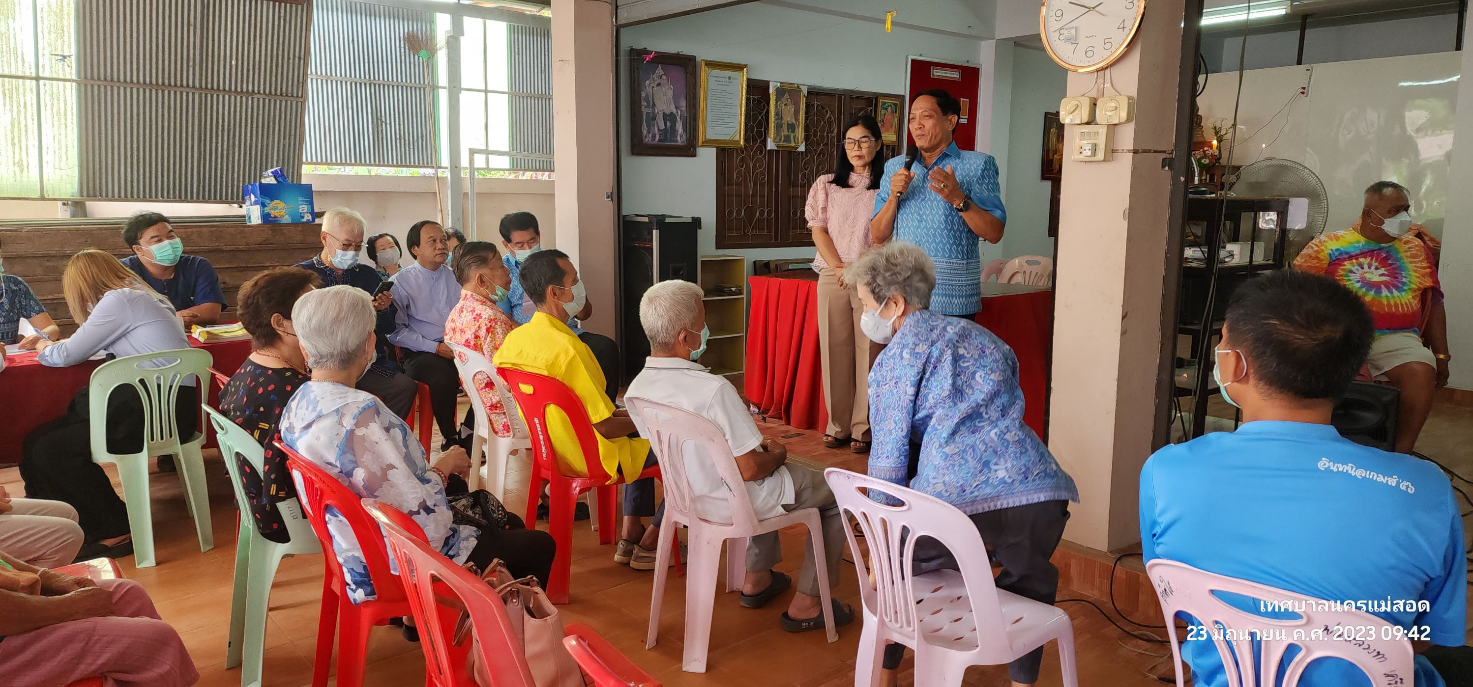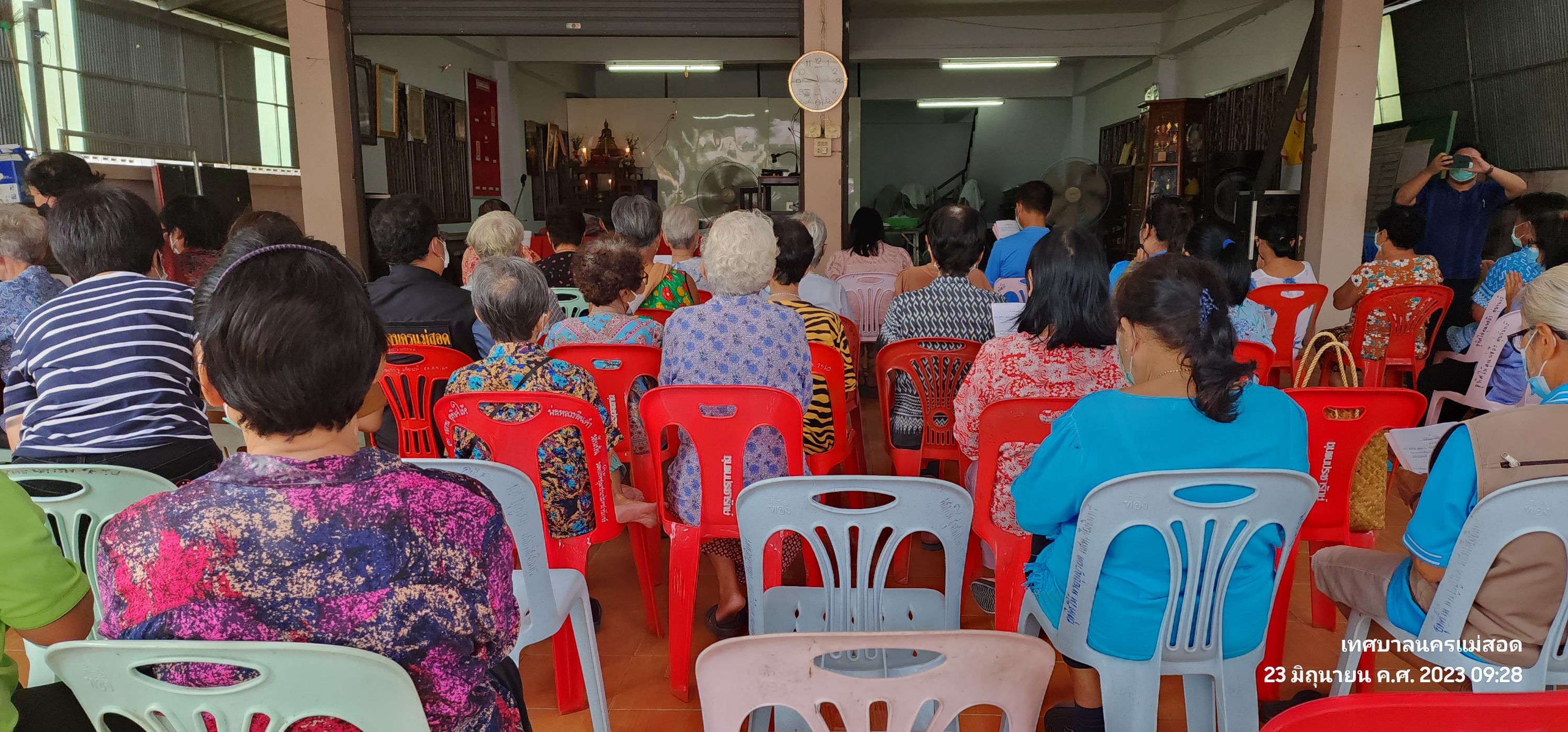 ว่าที่ร้อยตรีประเสริฐ ปวงละคร นายกเทศมนตรีนครแม่สอด พร้อมด้วยคณะผู้บริหาร สมาชิกสภาเทศบาลและเจ้าหน้าที่คลินิกชุมชนอบอุ่นเทศบาลนครแม่สอด เข้าร่วมกิจกรรมผู้สูงอายุชุมชนประชารักษ์และประชุมประจำเดือนมิถุนายน เพื่อส่งเสริมการรวมตัวกันของผู้สูงอายุ และเป็นศูนย์กลางให้ผู้สูงอายุได้แลกเปลี่ยนพบปะสังสรรค์ ทำกิจกรรมร่วมกันและตรวจสุขภาพเบื้องต้น เพื่อเป็นการดูแลสุขภาพให้กับผู้สูงอายุในชุมชนเทศบาลนครแม่สอด
