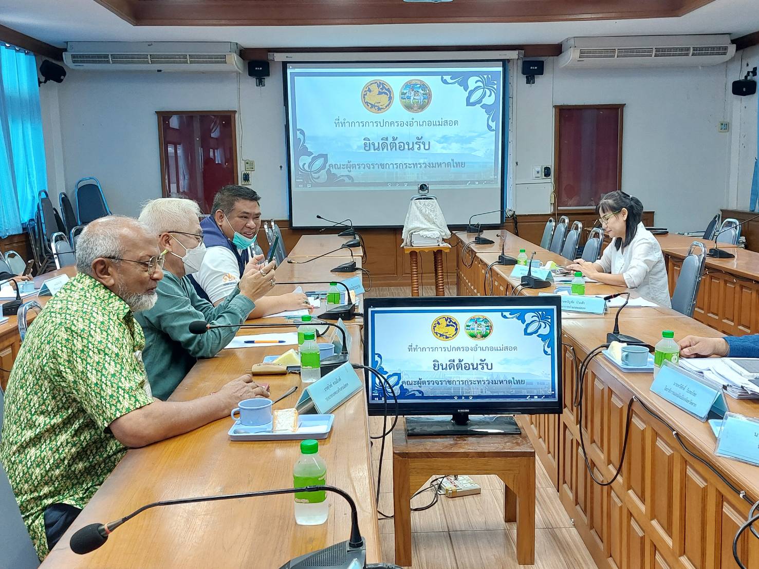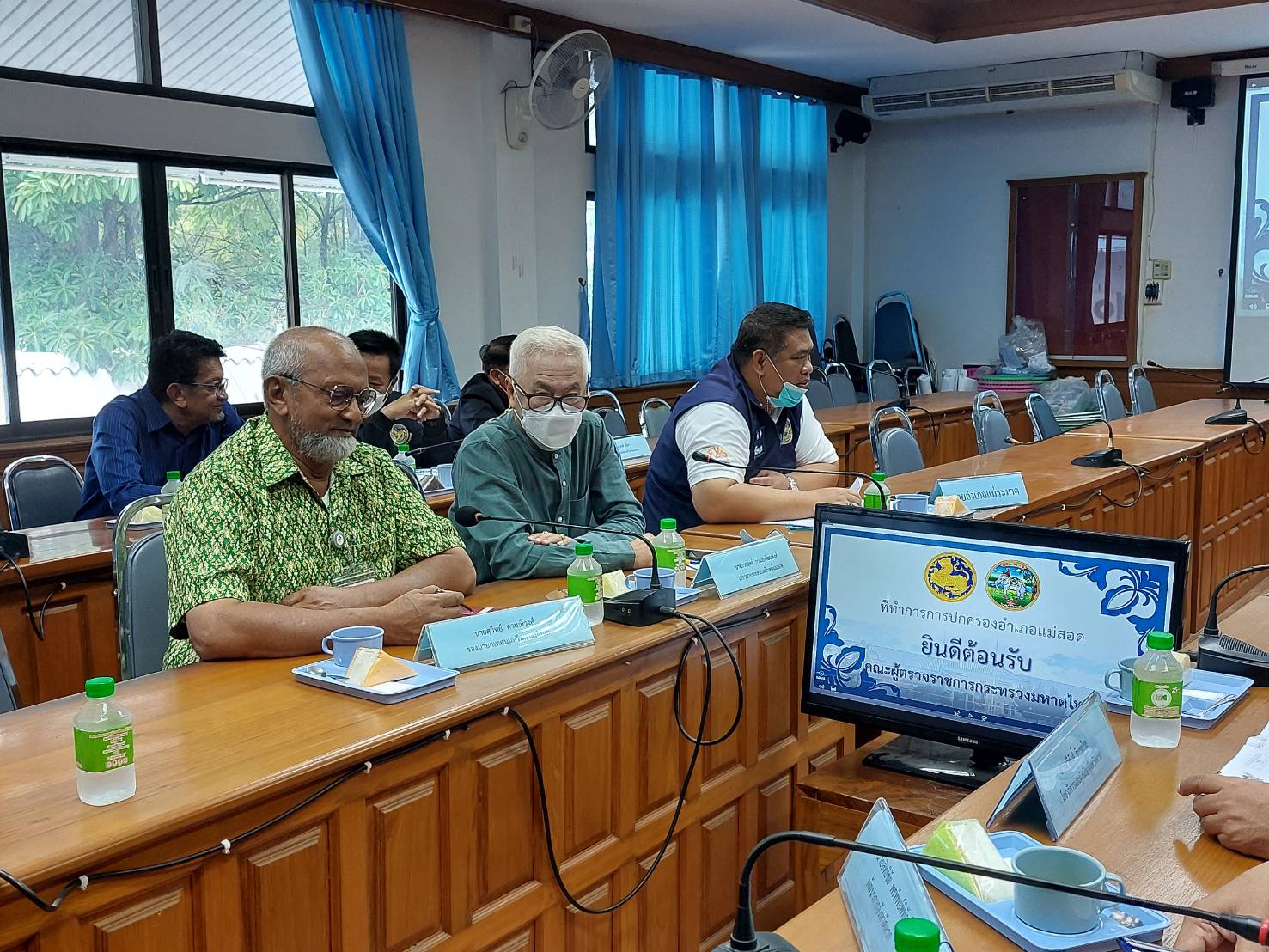 เพื่อปรึกษาหารือข้อราชการ ติดตามนโยบายรัฐบาลและกระทรวงมหาดไทย การขับเคลื่อนการดำเนินงานศูนย์อำนวยการขจัดความยากจน และพัฒนาชนบทตามปรัชญาเศรษฐกิจพอเพียง(ศจพ.) ด้วยระบบ Thai QM และตรวจเยี่ยมการให้บริการศูนย์ราชการสะดวก (GECC) ร่วมกับนายสมชาย ไตรทิพย์ชาติสกุล นายอำเภอแม่สอด พร้อมด้วยหัวหน้าส่วนราชการและหน่วยงานต่างๆ ในพื้นที่อำเภอแม่สอด