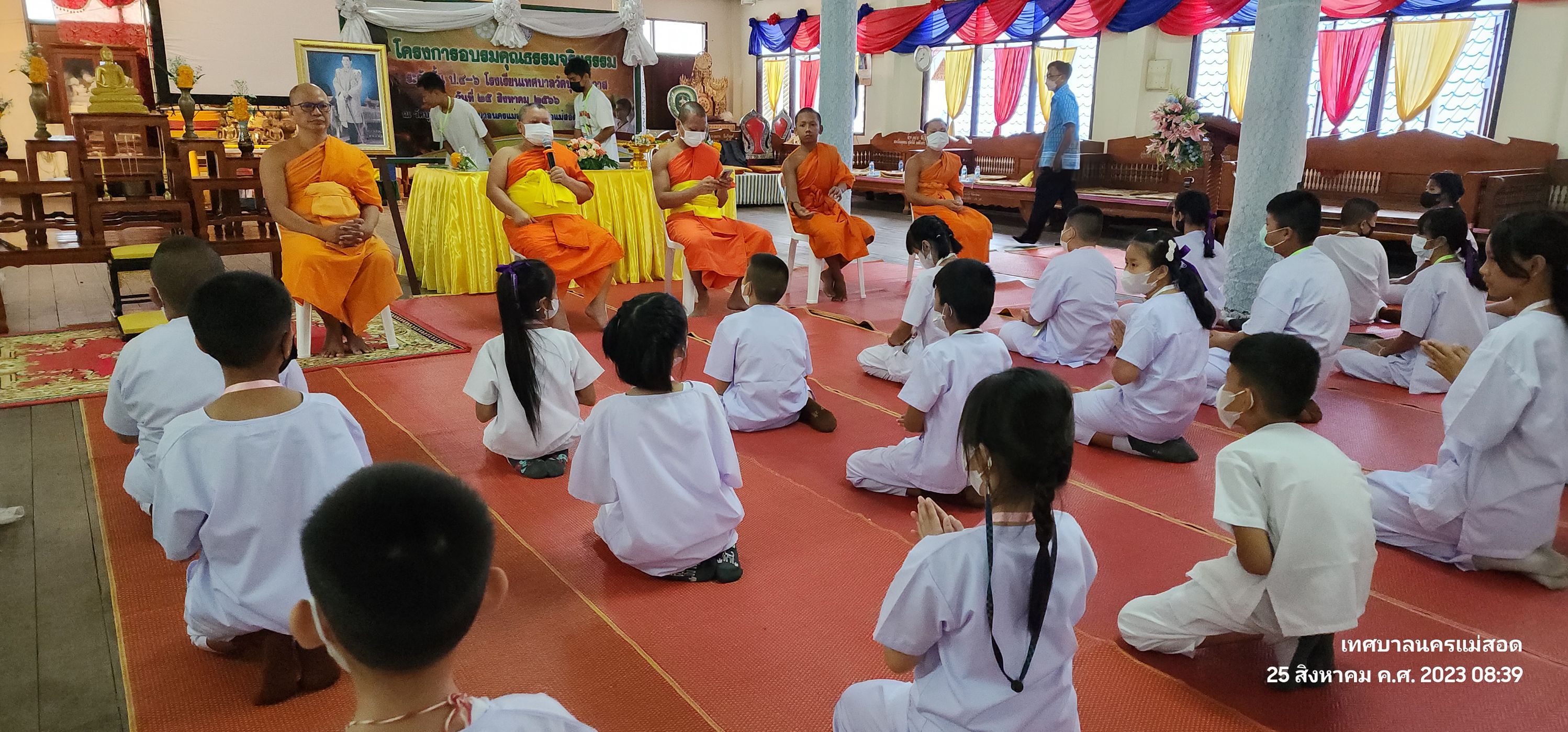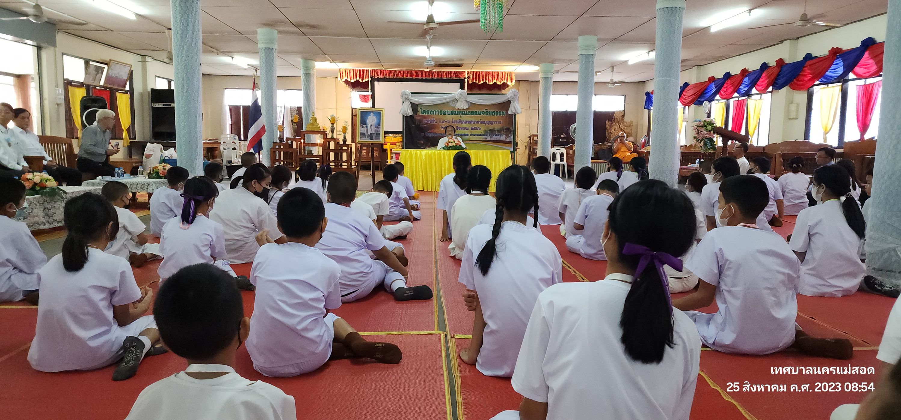 ว่าที่ร้อยตรี ประเสริฐ ปวงละคร นายกเทศมนตรีนครแม่สอด พร้อมด้วยคณะผู้บริหาร สมาชิกสภาเทศบาล ผู้อำนวยการกองการศึกษาและเจ้าหน้าที่ที่เกี่ยวข้องเทศบาลนครแม่สอด เข้าร่วมเป็นเกียรติพิธีเปิดโครงการเข้าค่ายอบรมคุณธรรม จริธรรม ระดับชั้น ป.4-6 โรงเรียนเทศบาลวัดบุญญาวาส ประจำปีการศึกษา 2566