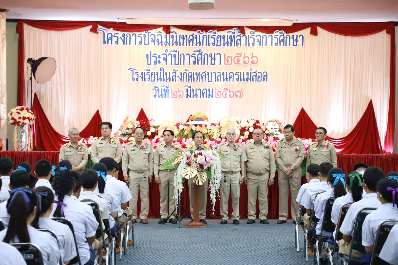 ว่าที่ร้อยตรี ประเสริฐ ปวงละคร นายกเทศมนตรีนครแม่สอด เป็นประธานในพิธีเปิดโครงการฯ พร้อมด้วยคณะผู้บริหาร สมาชิกสภาเทศบาล ปลัดเทศบาล รองปลัดเทศบาล หัวหน้าส่วนราชการเทศบาลนครแม่สอด ผู้อำนวยการโรงเรียน คณะครูสถานศึกษาในสังกัดเทศบาลนครแม่สอด และผู้ปกครองนักเรียน โดยมี นายศุภกร เบญจกัญญา ปลัดเทศบาลนครแม่สอด เป็นผู้กล่าวรายงานถึงวัตถุประสงค์การจัดโครงการปัจฉิมนิเทศนักเรียนฯ ในครั้งนี้ เพื่อเป็นเกียรติแก่นักเรียนที่สำเร็จการศึกษา สร้างความภูมิใจให้แก่นักเรียน คณะครู อาจารย์ และผู้ปกครอง โดยมีนักเรียนที่สำเร็จการศึกษาระดับมัธยมศึกษาปีที่ 3 และมัธยมศึกษาปีที่ 6 ประจำปีการศึกษา 2566 ทั้งสิ้น 438 คน ประกอบด้วยนักเรียนจาก โรงเรียนเทศบาลวัดชุมพลคีรี โรงเรียนเทศบาลวัดมณีไพรสณฑ์ โรงเรียนเทศบาลวัดบุญญาวาส โรงเรียนเทศบาลวัดดอนแก้ว โรงเรียนเทศบาลเฉลิมพระเกียรติสมเด็จพระเทพรัตนราชสุดาฯ สยามบรมราชกุมารี และโรงเรียนกีฬาเทศบาลนครแม่สอด