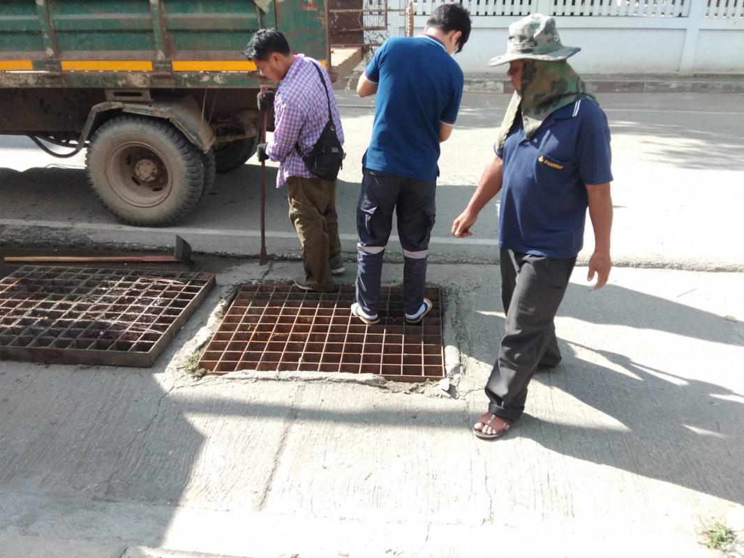 กองช่างสุขาภิบาลออกซ่อมตะแกรงท่อระบายน้ำเสียชำรุด หน้าโรงแรมเดอะทีค