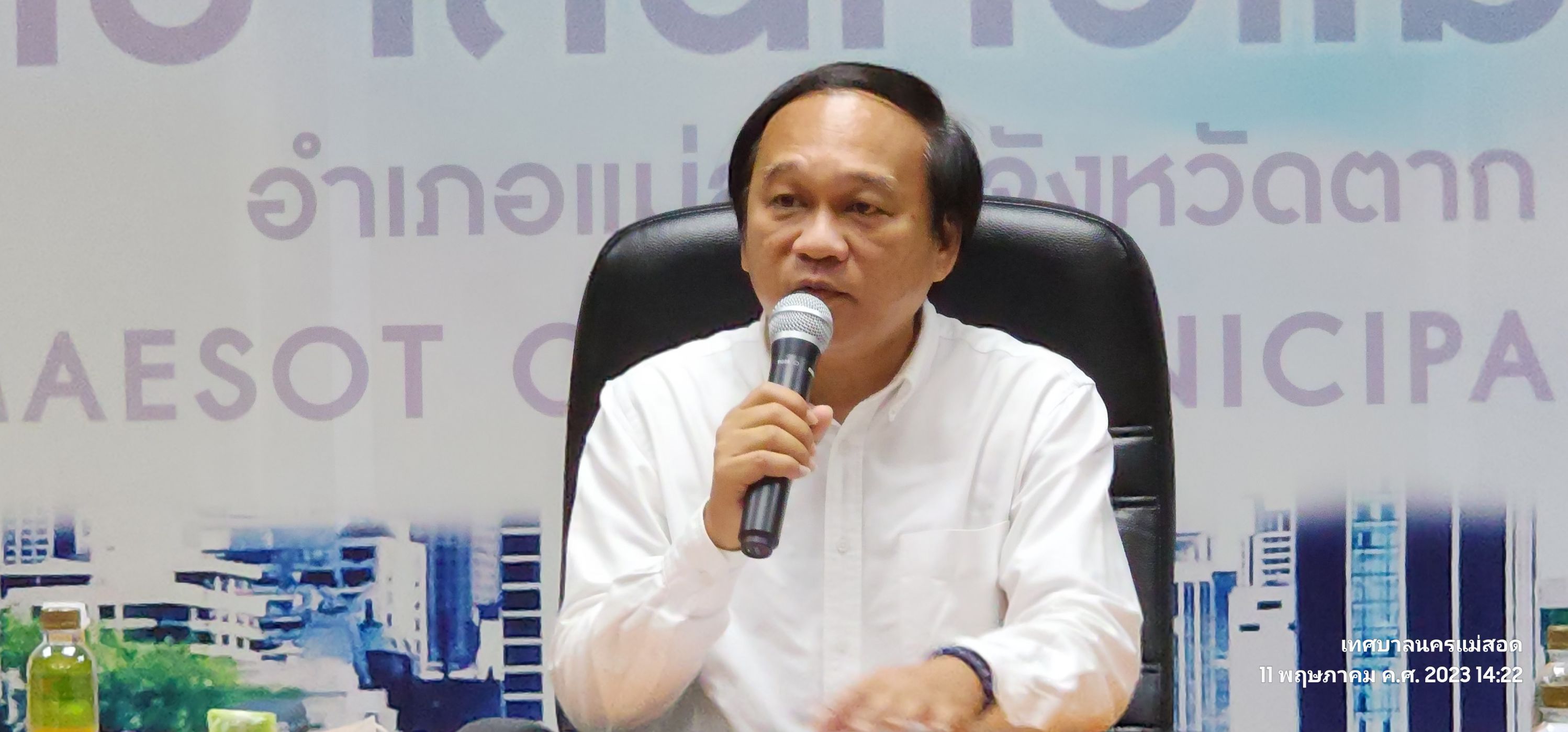 เมื่อวันพฤหัสบดี ที่ 11 พฤษภาคม 2566 เวลา 14.00 น. ณ ห้องประชุมนพรัตน์ ชั้น 5 อาคารศูนย์ส่งเสริมอาชีพชุมชนเทศบาลนครแม่สอด อำเภอแม่สอด จังหวัดตาก