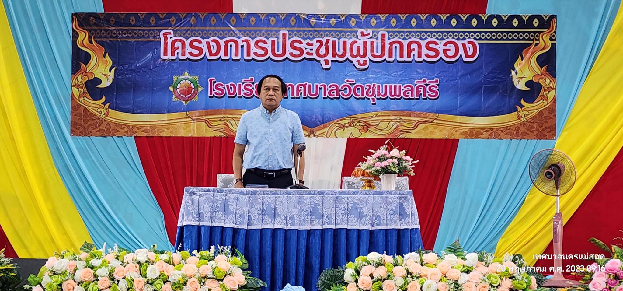 ว่าที่ร้อยตรี ประเสริฐ ปวงละคร นายกเทศมนตรีนครแม่สอด เป็นประธานการประชุมผู้ปกครองฯ พร้อมด้วยคณะผู้บริหาร สมาชิกสภาเทศบาลและเจ้าหน้าที่ที่เกี่ยวข้องเทศบาลนครแม่สอด เข้าร่วมการประชุมผู้ปกครองโรงเรียนเทศบาลวัดชุมพลคีรี ภาคเรียนที่ 1 ประจำปีการศึกษา 2566