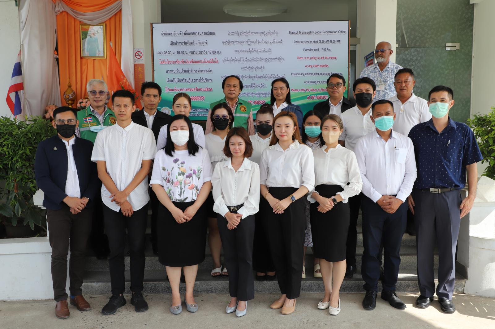 ว่าที่ร้อยตรีประเสริฐ ปวงละคร นายกเทศมนตรีนครแม่สอด พร้อมด้วยคณะผู้บริหาร ประธานสภาเทศบาล รองปลัด หัวหน้าส่วนราชการและเจ้าหน้าที่งานทะเบียนราษฎร ประชาสัมพันธ์การปฏิบัติงานสำนักทะเบียนท้องถิ่นเทศบาลนครแม่สอด เพื่อให้บริการประชาชนตามหลักธรรมาภิบาล