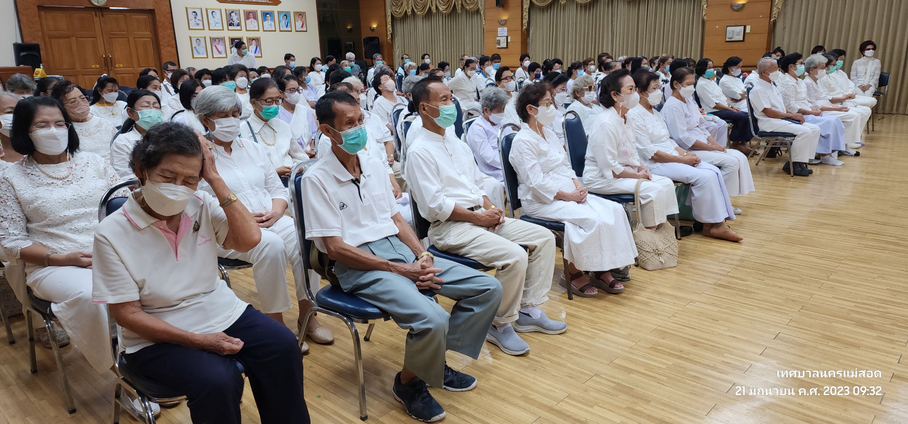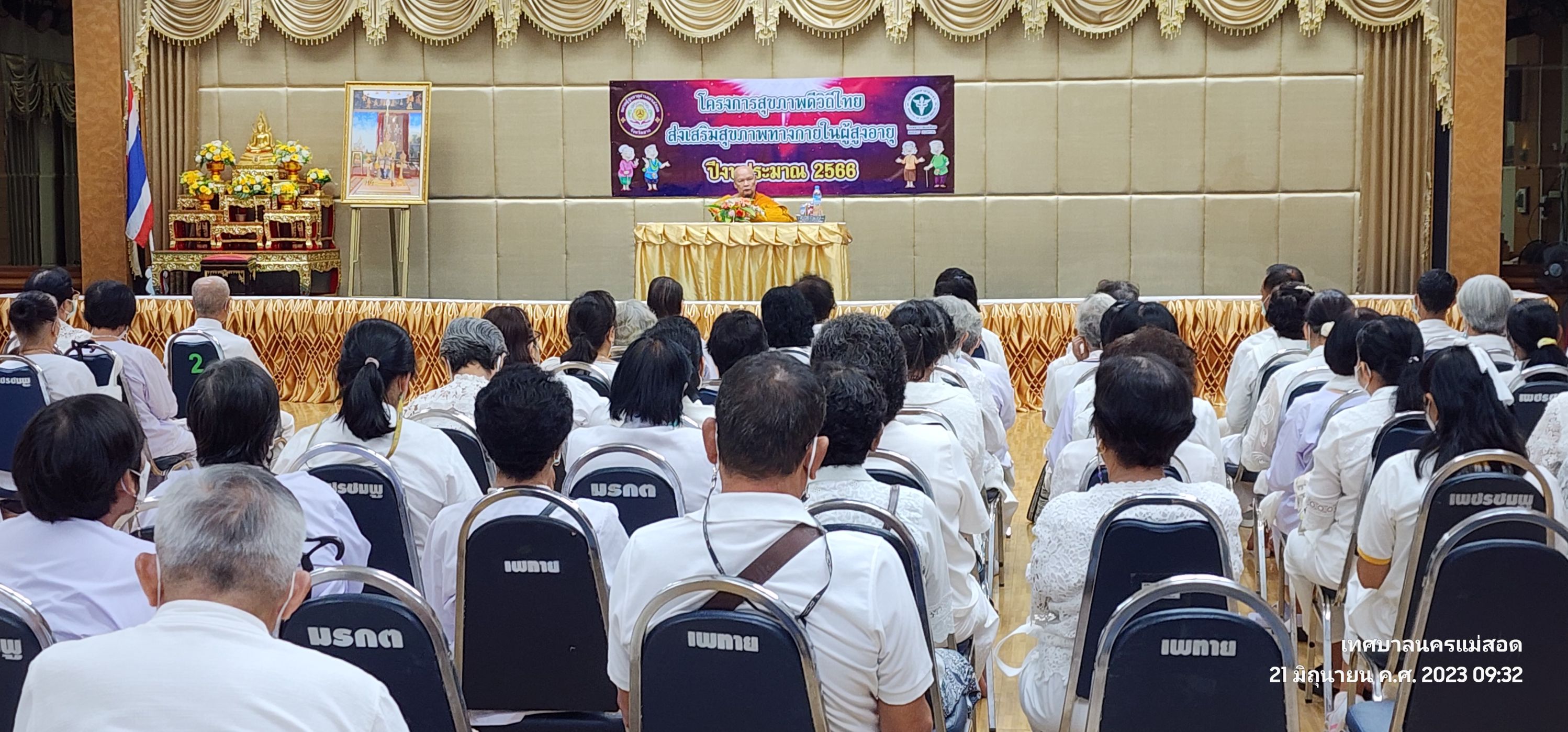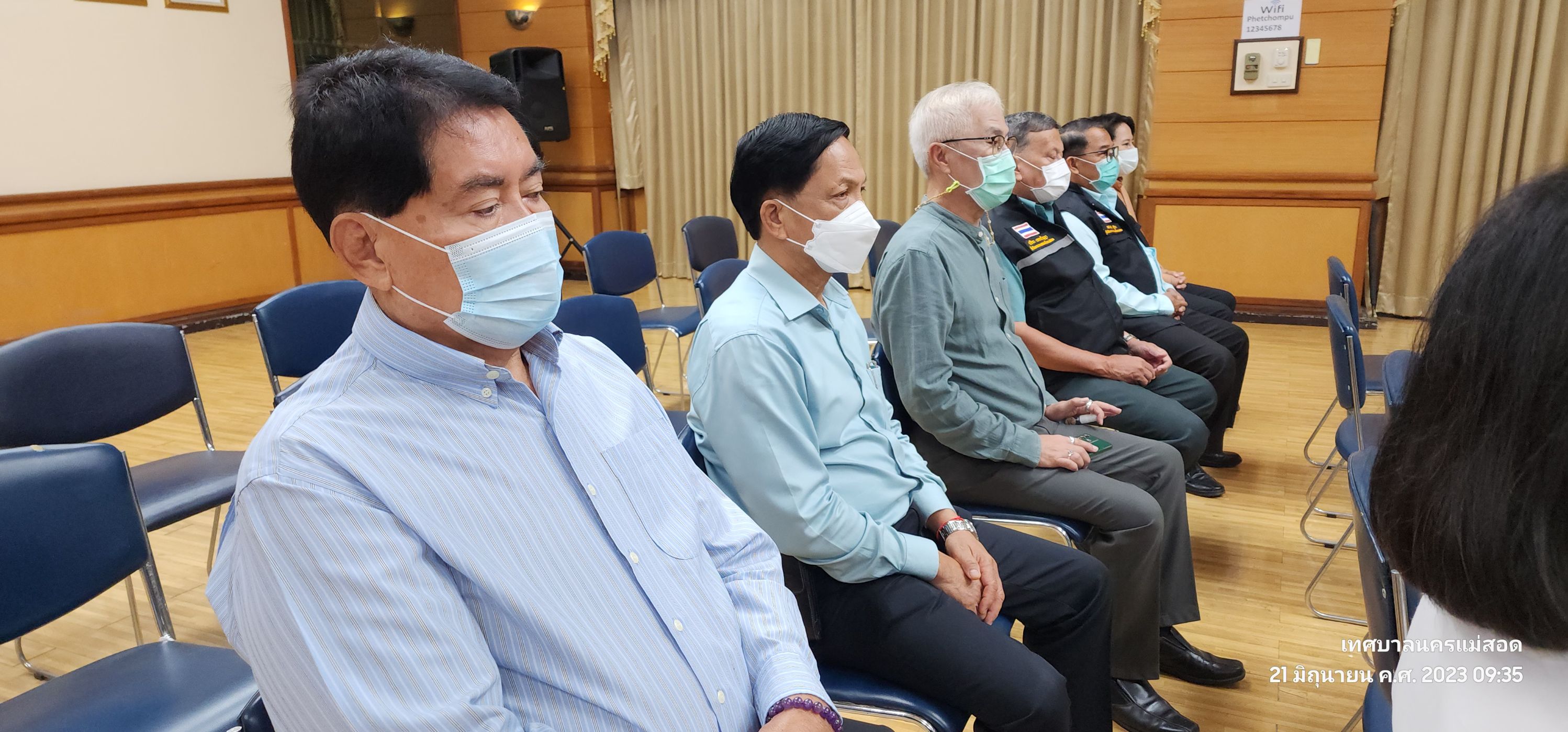 ว่าที่ร้อยตรีประเสริฐ ปวงละคร นายกเทศมนตรีนครแม่สอด มอบหมายให้นายกรรณ กัณฑ์นิล และนายกรณพงศ์ คงปาน รองนายกเทศมนตรีนครแม่สอด พร้อมด้วยคณะผู้บริหาร และเจ้าหน้าที่ที่เกี่ยวข้องเทศบาลนครแม่สอด เข้าร่วมโครงการสุขภาพดีวิถีไทยส่งเสริมสุขภาพทางกายในผู้สูงอายุ ประจำปีงบประมาณ 2566