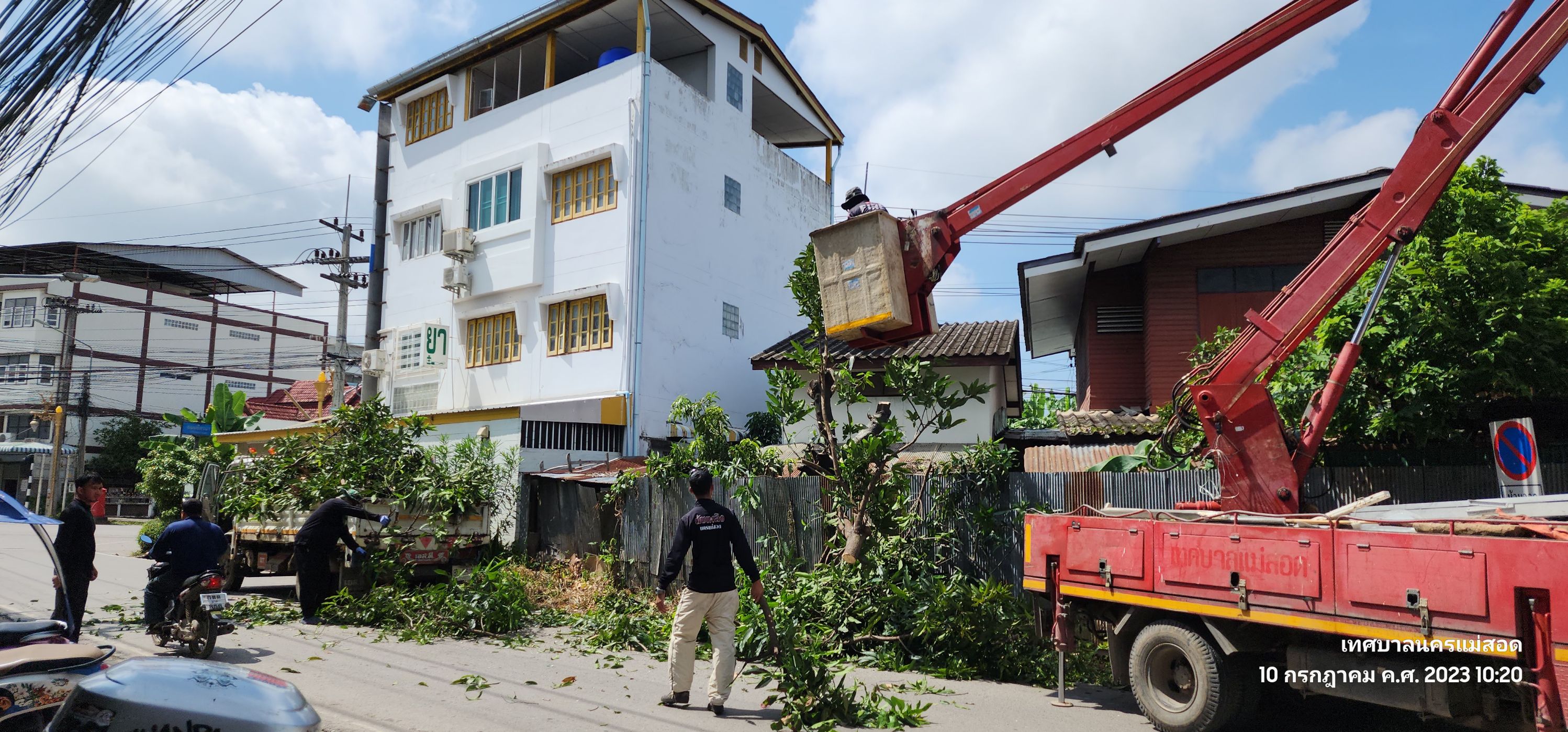 ว่าที่ร้อยตรีประเสริฐ ปวงละคร นายกเทศมนตรีนครแม่สอด พร้อมด้วยคณะผู้บริหาร สมาชิกสภาเทศบาลนครแม่สอด มอบหมายให้เจ้าหน้าที่ฝ่ายป้องกันและบรรเทาสาธารณภัย เทศบาลนครแม่สอด ลงพื้นที่ดำเนินการตัดต้นไม้สูงเหนือหลังคาบ้าน และพาดผ่านแนวสายไฟฟ้า เพื่อป้องกันทรัพย์สินและสร้างความปลอดภัยในชีวิตของประชาชน