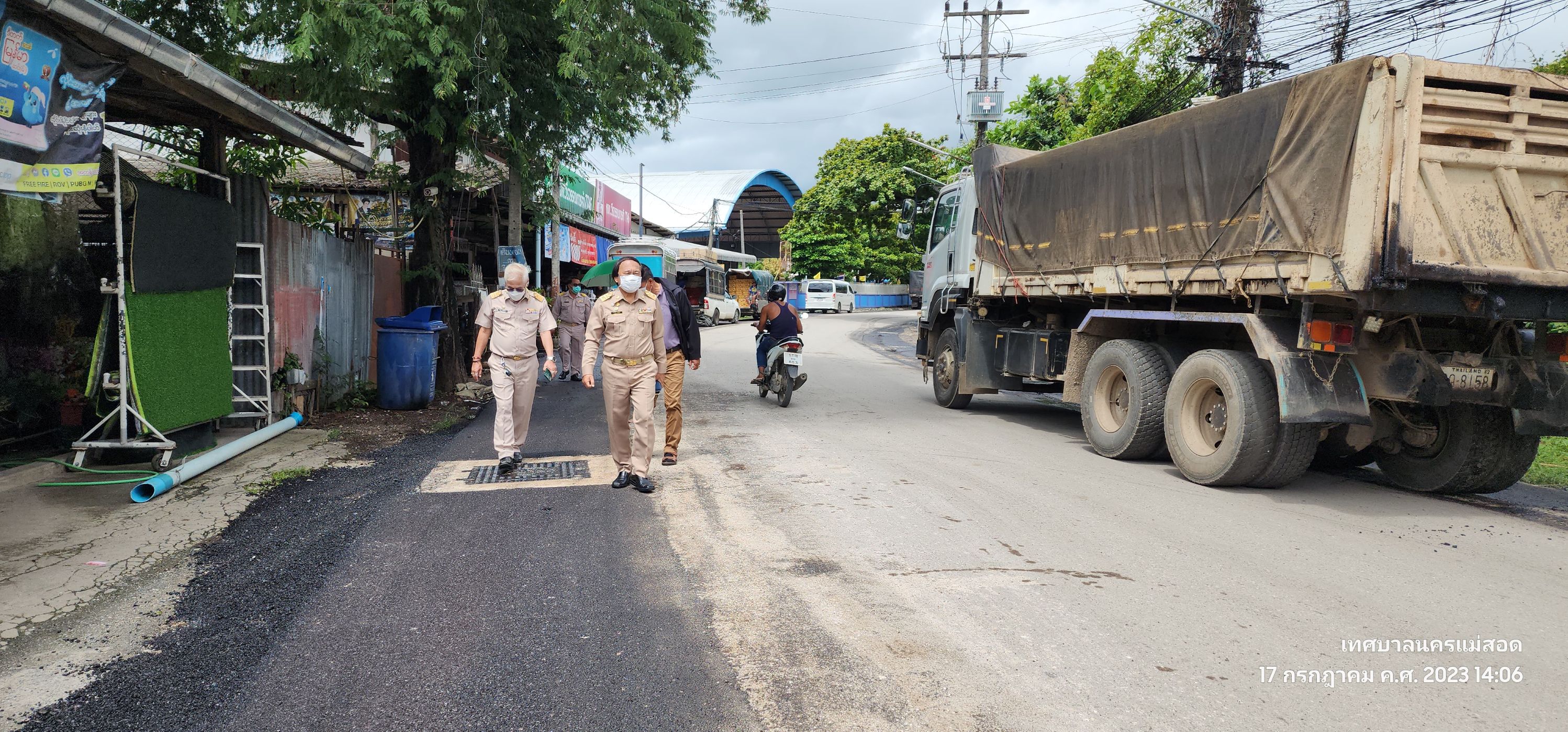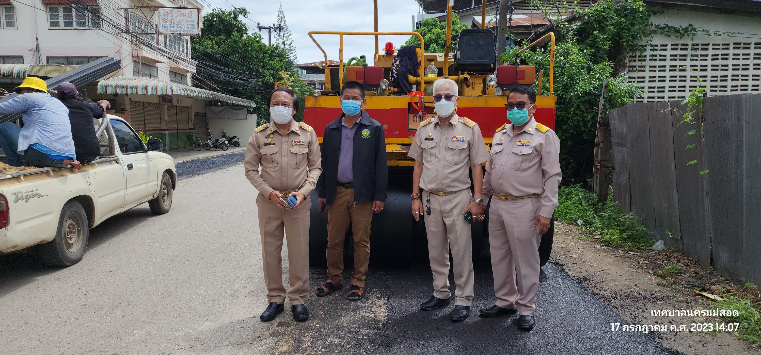 ว่าที่ร้อยตรีประเสริฐ ปวงละคร นายกเทศมนตรีนครแม่สอด พร้อมด้วยคณะผู้บริหาร สมาชิกสภาเทศบาล หัวหน้าส่วนราชการและเจ้าหน้าที่ที่เกี่ยวข้องเทศบาลนครแม่สอด ลงพื้นที่ติดตามความเรียบร้อยการปรับปรุงเสริมผิวจราจรลาดยางแอสฟัลท์ติก บริเวณไหล่ถนนชิดวนา ระยะทางจากแยกศาลเจ้าพ่อพระวอ - วงเวียนพระพิฆเนศ เพื่อให้การก่อสร้างเป็นไปด้วยความเรียบร้อย