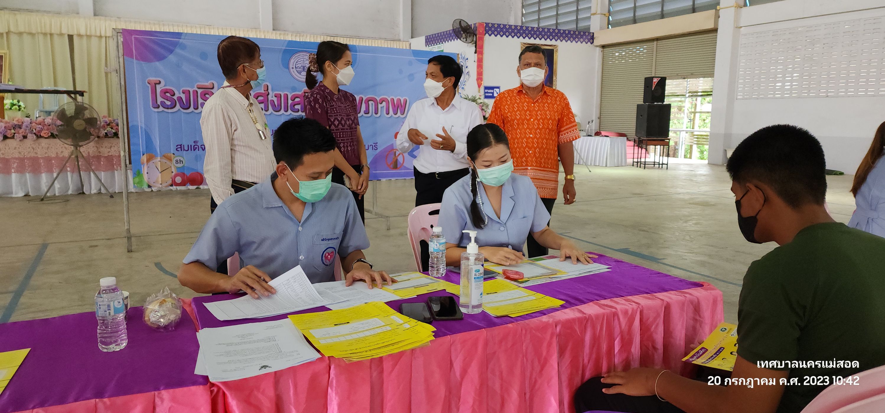 ว่าที่ร้อยตรีประเสริฐ ปวงละคร นายกเทศมนตรีนครแม่สอด มอบหมายให้นายกรณพงศ์ คงปาน รองนายกเทศมนตรีนครแม่สอด พร้อมด้วยคณะผู้บริหาร สมาชิกสภาเทศบาลและเจ้าหน้าที่คลินิกชุมชนอบอุ่นเทศบาลนครแม่สอด ลงพื้นที่ตรวจคัดกรองสุขภาพเด็กวัยเรียน สถานศึกษาในสังกัดเทศบาลนครแม่สอด เพื่อให้ความรู้ความเข้าใจในเรื่องสุขภาพอนามัยและให้นักเรียนได้ตระหนักถึงความสำคัญของสุขภาพ สามารถปฏิบัติตัวได้อย่างถูกวิธี ซึ่งจะส่งผลให้นักเรียนมีสุขอนามัยอยู่ในเกณฑ์ที่เหมาะสมกับช่วงวัยของเด็กนักเรียน