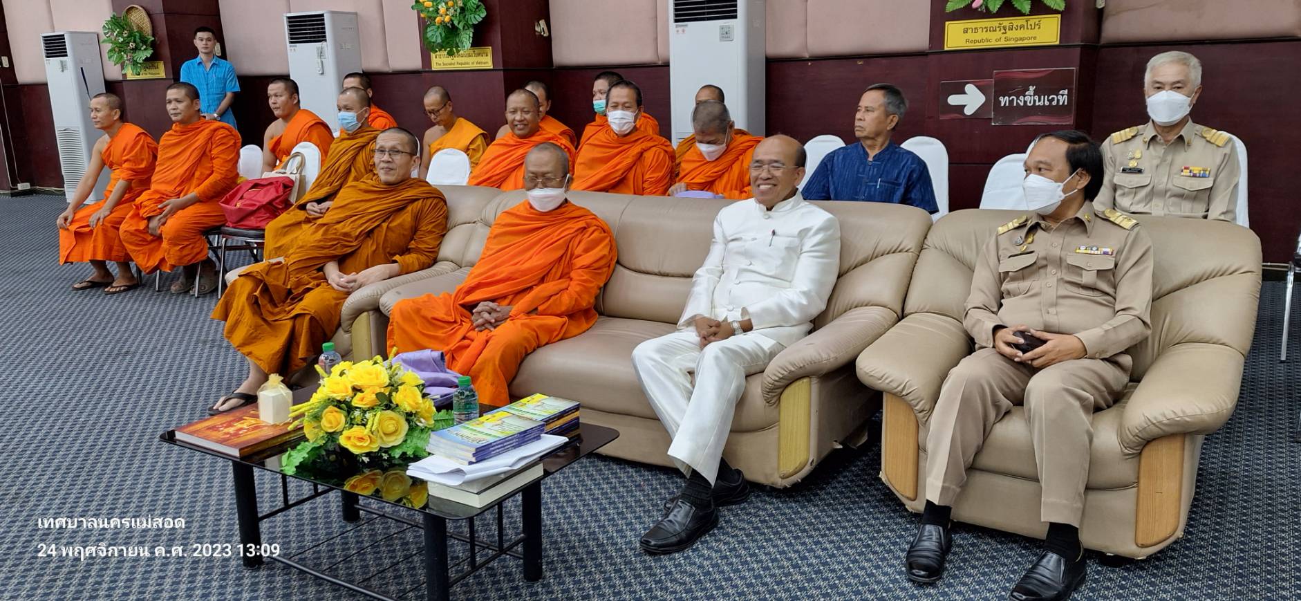 ว่าที่ร้อยตรี ประเสริฐ ปวงละคร นายกเทศมนตรีนครแม่สอด พร้อมด้วยนายกรณพงศ์ คงปาน รองนายกเทศมนตรี นายกรกฤตย์ กรัณยพัฒนพงศ์ เลขานุการนายกเทศมนตรี ผู้อำนวยการกองการศึกษา คณะครู และนักเรียนในสังกัดเทศบาลนครแม่สอด เข้าร่วมรับฟังบรรยายพิเศษอันเป็นประโยชน์ในการส่งเสริมการเผยแผ่พระพุทธศาสนา สำหรับการบรรยายช่วงเช้าเป็นของนักเรียน นักศึกษาและพุทธศาสนิกชนโดยทั่วไป และช่วงบ่ายเป็นของพระภิกษุ สามเณร จาก พ.อ.นพ.พงศ์ศักดิ์ ตั้งคณา นักพูดผู้ทรงคุณวุฒิ