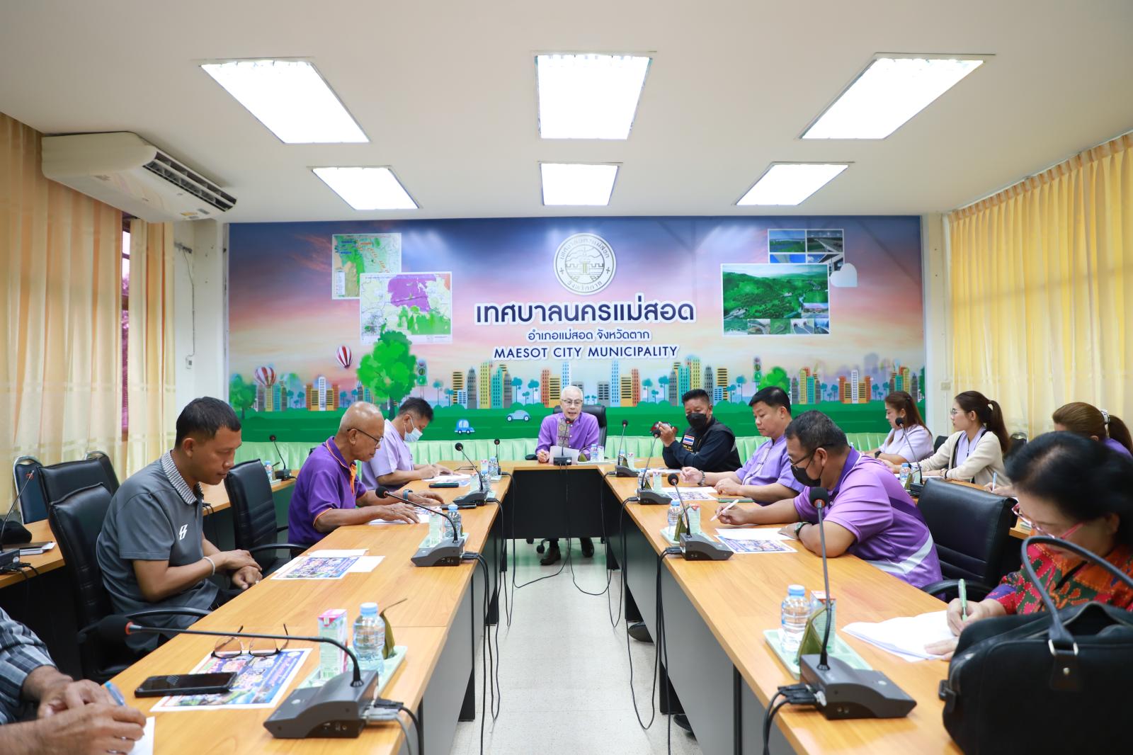 ว่าที่ร้อยตรี ประเสริฐ ปวงละคร นายกเทศมนตรีนครแม่สอด มอบหมายให้ นายกรกฤตย์ กรัณยพัฒนพงศ์ รองนายกเทศมนตรี พร้อมด้วย นายสมเกียรติ สุริยา ที่ปรึกษานายกเทศมนตรี สมาชิกสภาเทศบาล ปลัดเทศบาล รองปลัดเทศบาล ผู้อำนวยการกองสาธารณสุข และสิ่งแวดล้อม เจ้าหน้าที่เทศบาล และประธานชุมชน เข้าร่วมประชุมหารือการจัดงาน “ของดีนครแม่สอด” โดยจะดำเนินการจัดงานระหว่างวันที่ 8-17 มีนาคม 2567 ณ สนามกีฬาสมเด็จพระนเรศวรมหาราช เพื่อส่งเสริมการท่องเที่ยวและกระตุ้นเศรษฐกิจ ก่อให้เกิดการกระจายรายได้แก่ประชาชนในพื้นที่อย่างทั่วถึง ในการจำหน่ายสินค้าเกษตร OTOP อาหารพื้นเมือง เสื้อผ้า หัตถกรรม และศิลปะ