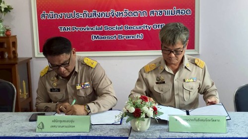 นายกุล เครือวีระ นายกเทศมนตรีนครแม่สอด พร้อมด้วย นายยงยุทธ จาตุย เลขานุการนายกเทศมนตรี นายอภิชาต อัศวปยุกต์กุล เลขานุการนายกเทศมนตรี และเจ้าหน้าที่คลินิกชุมชนอบอุ่น กองสาธารณสุขและสิ่งแวดล้อม ร่วมลงนามบันทึกข้อตกลง MOU ร่วมกับสำนักงานประกันสังคมเป็นสถานพยาบาลเพื่อให้บริการทางการแพทย์กรณีทันตกรรม แก่ผู้ประกันตน ประจำปี 2569 โดยผู้ประกันตนสามารถเข้ารับบริการงานทันตกรรม ได้แก่ อุดฟัน (อุดฟันสีเหมือนฟัน) ขูดหินปูน และถอนฟันอย่างง่าย ให้บริการฟรีโดยไม่มีค่าใช้จ่าย ได้ในวันและเวลาราชการ