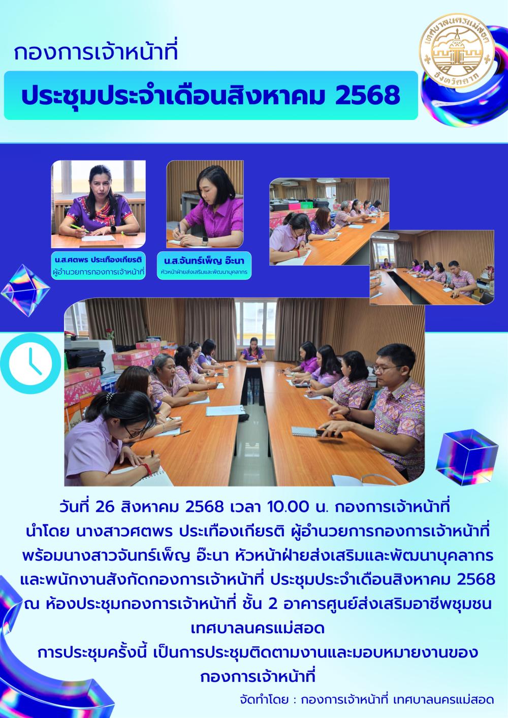 กองการเจ้าหน้าที่ ประชุมประจำเดือนสิงหาคม 2568