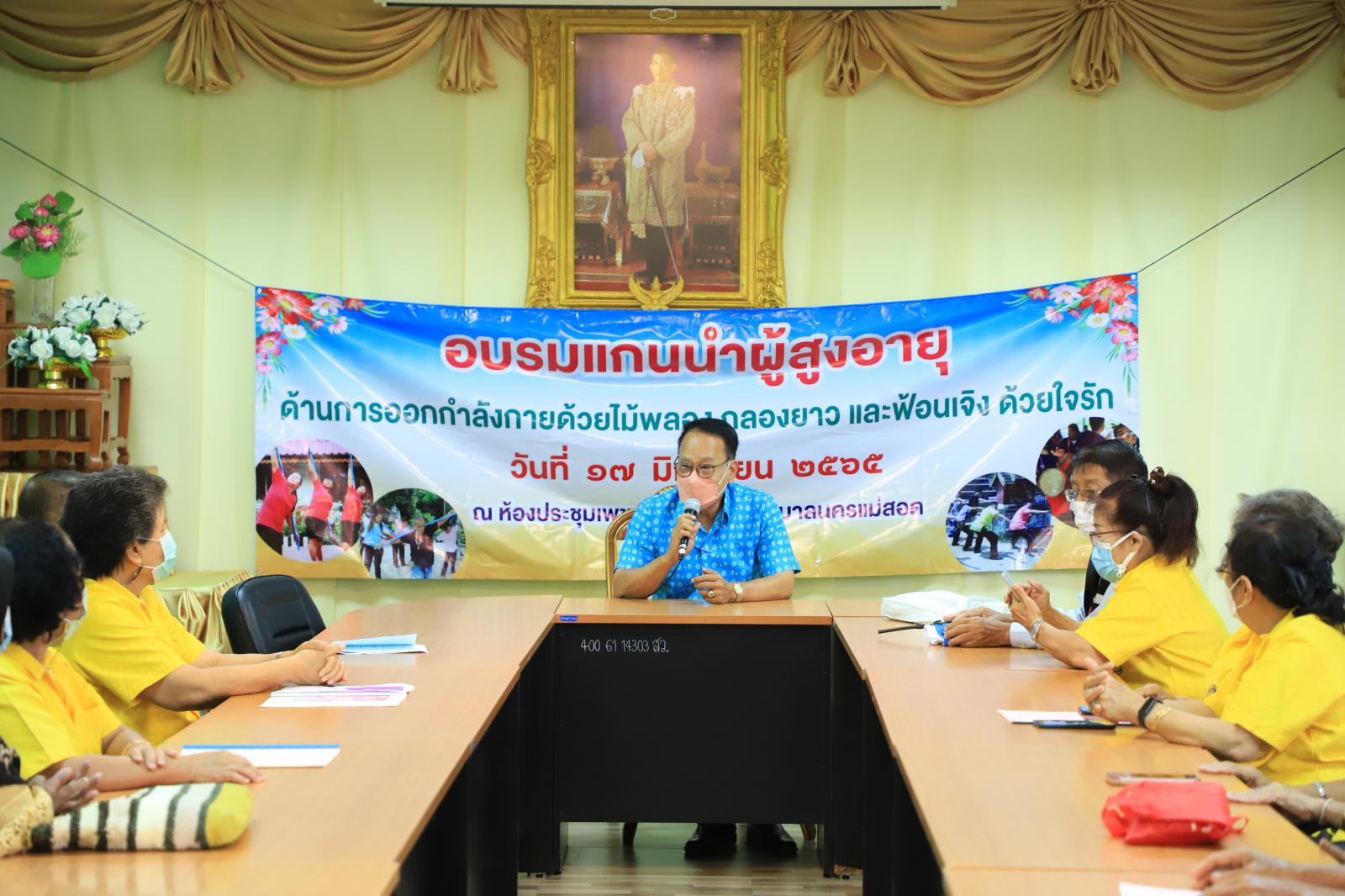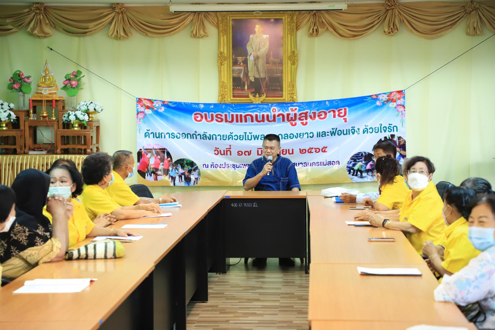 ว่าที่ร้อยตรีประเสริฐ ปวงละคร นายกเทศมนตรีนครแม่สอด มอบหมายให้ นายไกรสร กิจการ รองนายกเทศมนตรีนครแม่สอด เป็นประธานพิธีเปิดการอบรม โดยมีสมาชิกสภาเทศบาล รองปลัดเทศบาล และแกนนำผู้สูงอายุในเขตเทศบาลนครแม่สอด เข้าร่วมการอบรมแกนนำผู้สูงอายุ ด้านการออกกำลังกายด้วยไม้พลอง กลองยาว และฟ้อนเจิงด้วยใจรัก เพื่อให้ผู้สูงอายุหันมาออกกำลังกายมีสุขภาพแข็งแรง มีภูมิต้านทานโรค ลดความเครียด ลดอัตราการป่วยจากโรคภัยสุขภาพ อีกทั้งเสริมสร้างความรัก ความสามัคคี ในกลุ่มผู้สูงอายุ โดยการนำกิจกรรมการออกกำลังกายมาเป็นสื่อในการสร้างความรักและความสามัคคี