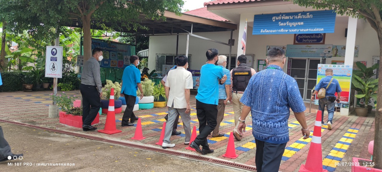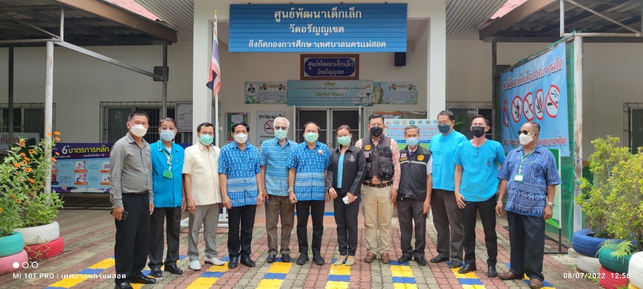 ว่าที่ร้อยตรีประเสริฐ ปวงละคร นายกเทศมนตรีนครแม่สอด พร้อมด้วยคณะผู้บริหาร สมาชิกสภาเทศบาล และรองปลัดเทศบาล เข้าตรวจเยี่ยมคณะครู และนักเรียนศูนย์พัฒนาเด็กเล็ก วัดอรัญญเขต ในการเปิดภาคเรียน ปีการศึกษา 2565