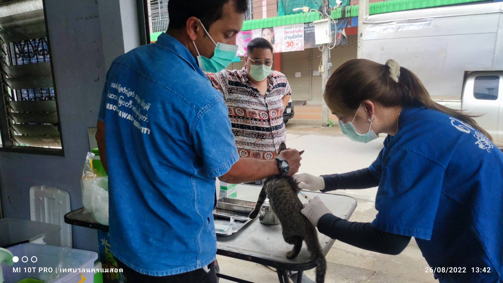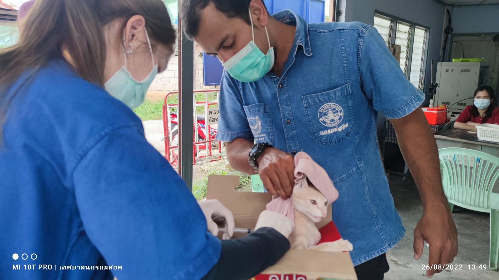 ตามวันและเวลาที่กำหนด คณะผู้บริหารเทศบาลนครแม่สอด ได้ตระหนักถึงอันตรายที่จะเกิดขึ้นจาก โรคพิษสุนัขบ้าในสัตว์เลี้ยง จึงจัดเจ้าหน้าที่กองสาธารณสุขและสิ่งแวดล้อม เทศบาลนครแม่สอด ออกหน่วยให้บริการฉีดวัคซีนป้องกันโรคพิษสุนัขบ้าให้แก่สุนัขและแมวฟรี ตามโครงการสัตว์ปลอดโรค คนปลอดภัยจากโรคพิษสุนัขบ้า