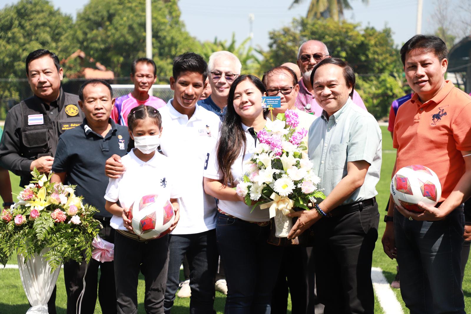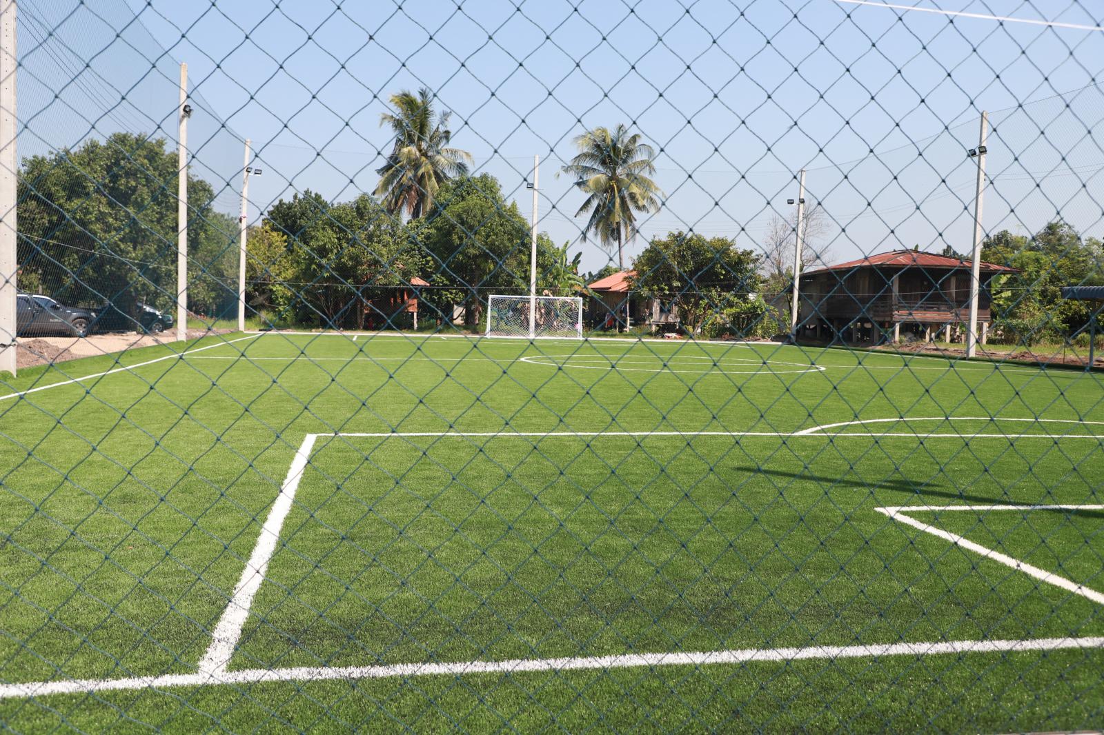 โดยภายในงานมีพิธีทำบุญถวายภัตตาหารเพลแด่พระสงฆ์ และร่วมตัดริบบิ้นเปิดงานพร้อมกล่าวแสดงความยินดี กับนางสาวไอษญา สิทธิมา และครอบครัว ในการสร้างสนามฟุตบอลหญ้าเทียมขึ้น เพื่อส่งเสริมสนับสนุนให้เด็กและเยาวชน คนในชุมชนได้ออกกำลังกายและใช้เวลาว่างให้เกิดประโยชน์ห่างไกลจากยาเสพติด ร่วมถึงเป็นทางเลือกให้กับผู้เล่นฟุตบอล เพิ่มพัฒนาทักษะและเทคนิคในการเล่นฟุตบอลด้านต่างๆ ต่อไป