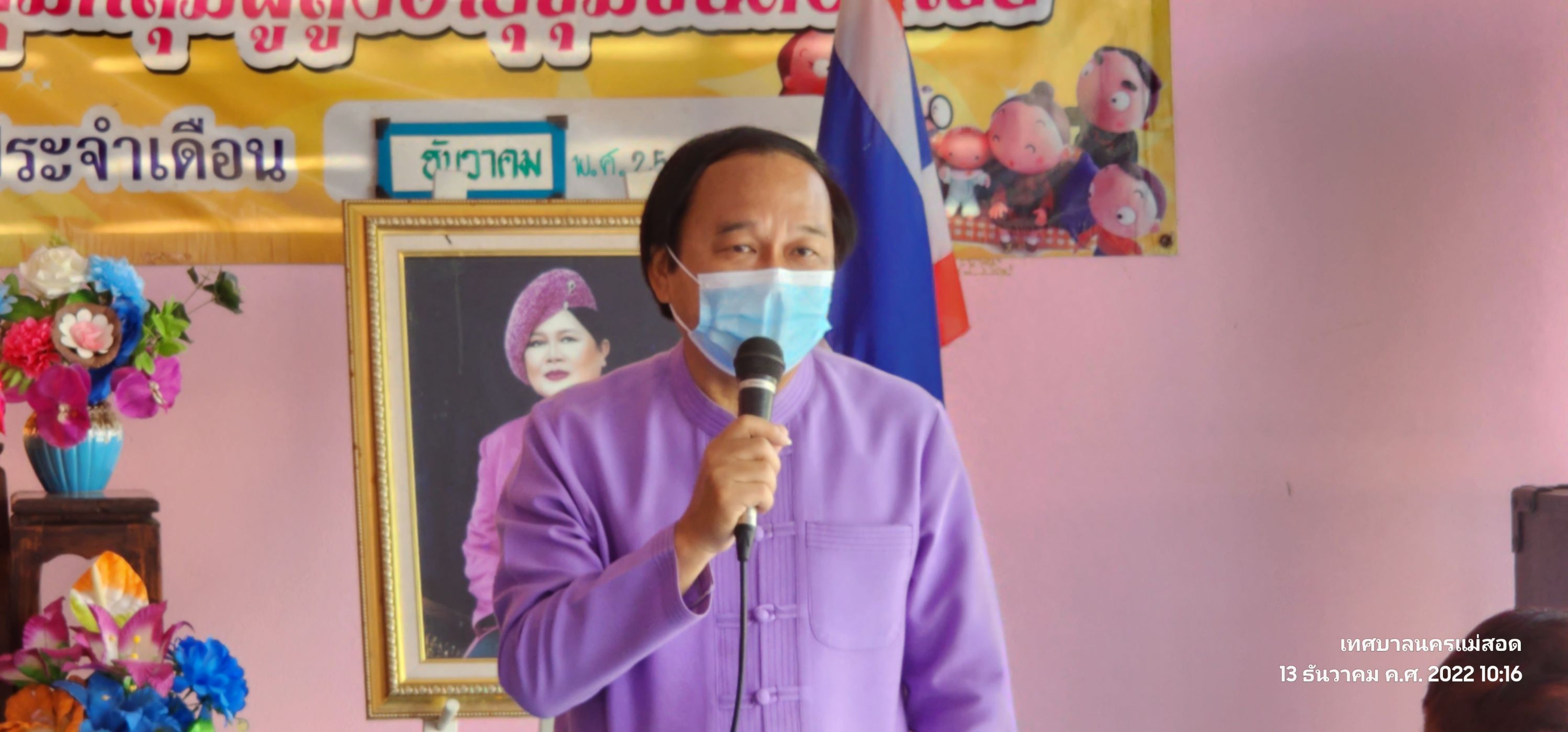 ว่าที่ร้อยตรีประเสริฐ ปวงละคร นายกเทศมนตรีนครแม่สอด พร้อมด้วยคณะผู้บริหาร สมาชิกสภาเทศบาล และเจ้าหน้าที่คลินิกชุมชนอบอุ่นเทศบาลนครแม่สอด ร่วมกิจกรรมผู้สูงอายุพร้อมประชุมประจำเดือน ธันวาคม 2565 ชุมชนดอนไชย เพื่อพบปะ พูดคุยให้กำลังใจ พร้อมรับฟังปัญหาและหาแนวทางแก้ไขร่วมกับชุมชน รวมถึงประชาสัมพันธ์ข่าวสารต่างๆ และกล่าวความแสดงห่วงใยถึงสถานณ์การโควิด-19 ที่ยังคงแพร่ระบาดอย่างต่อเนื่องจึงขอให้ประชาชนร่วมใจกันปฏิบัติตามมาตรการป้องกันการแพร่ระบาดโรคติดเชื้อไวรัสโควิด-19 พร้อมมอบสเปรย์แอลกอฮอล์แบบพกพาให้กับผู้สูงอายุที่เข้าร่วมประชุมดังกล่าว