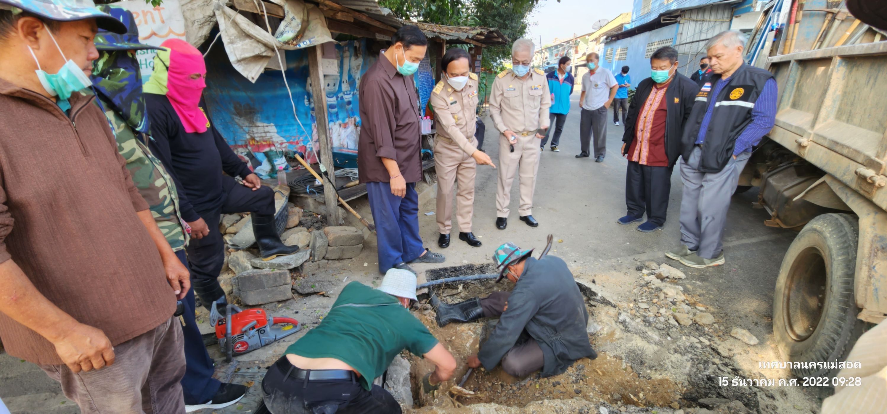 ว่าที่ร้อยตรี ประเสริฐ ปวงละคร นายกเทศมนตรีนครแม่สอด พร้อมคณะผู้บริหาร สมาชิกสภาเทศบาล เจ้าหน้าที่กองช่างสุขาภิบาลนครแม่สอด และเทศกิจนครแม่สอด ลงพื้นที่ตรวจความเรียบร้อยการแก้ไขปัญหารากไม้ดันผิวถนนเสียหาย เพื่อแก้ไขปรับปรุงพื้นผิวถนนที่ไม่สม่ำเสมอ ป้องกันการเกิดอุบัติเหตุ สร้างความปลอดภัย ให้ประชาชน ร่วมถึงปรับภูมิทัศน์ให้เป็นระเบียบเรียบร้อยสวยงาม