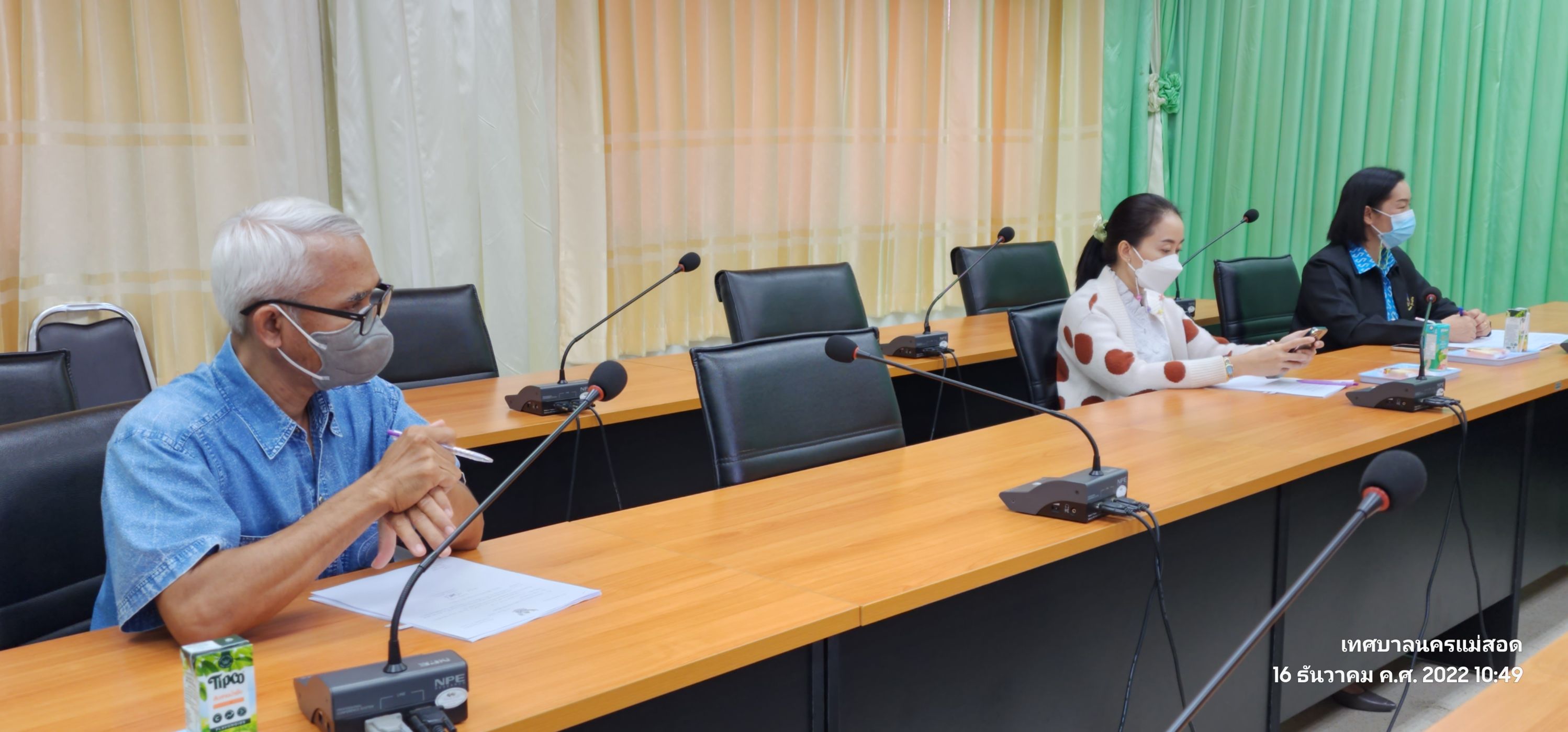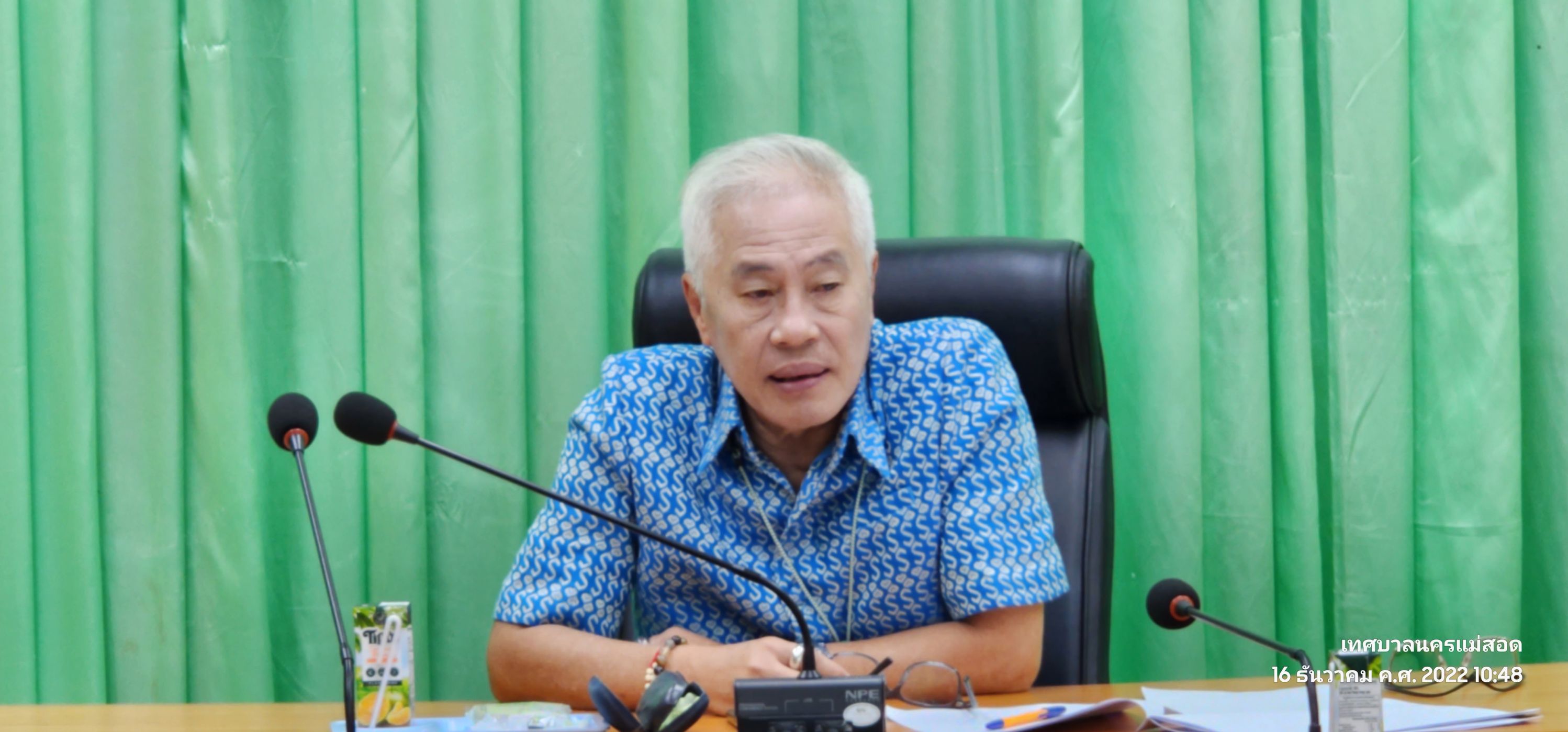 เมื่อวันศุกร์ ที่ 16 ธันวาคม 2565 เวลา 10.00 น. ณ ห้องประชุม AEC (ชั้น 2) สำนักงานเทศบาลนครแม่สอด อำเภอแม่สอด จังหวัดตาก